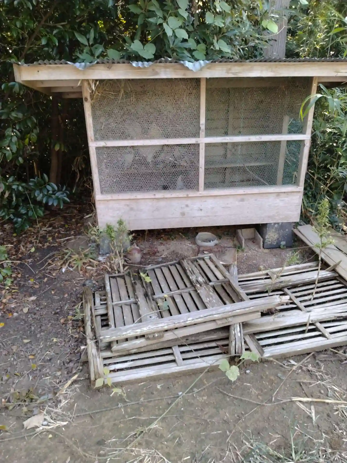 男山八幡神社 駐車場の敷地内にある(鶏小屋)の様子です