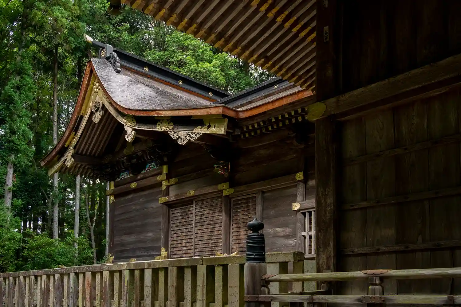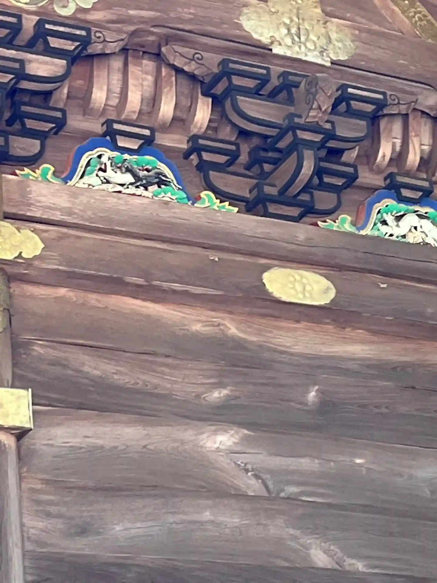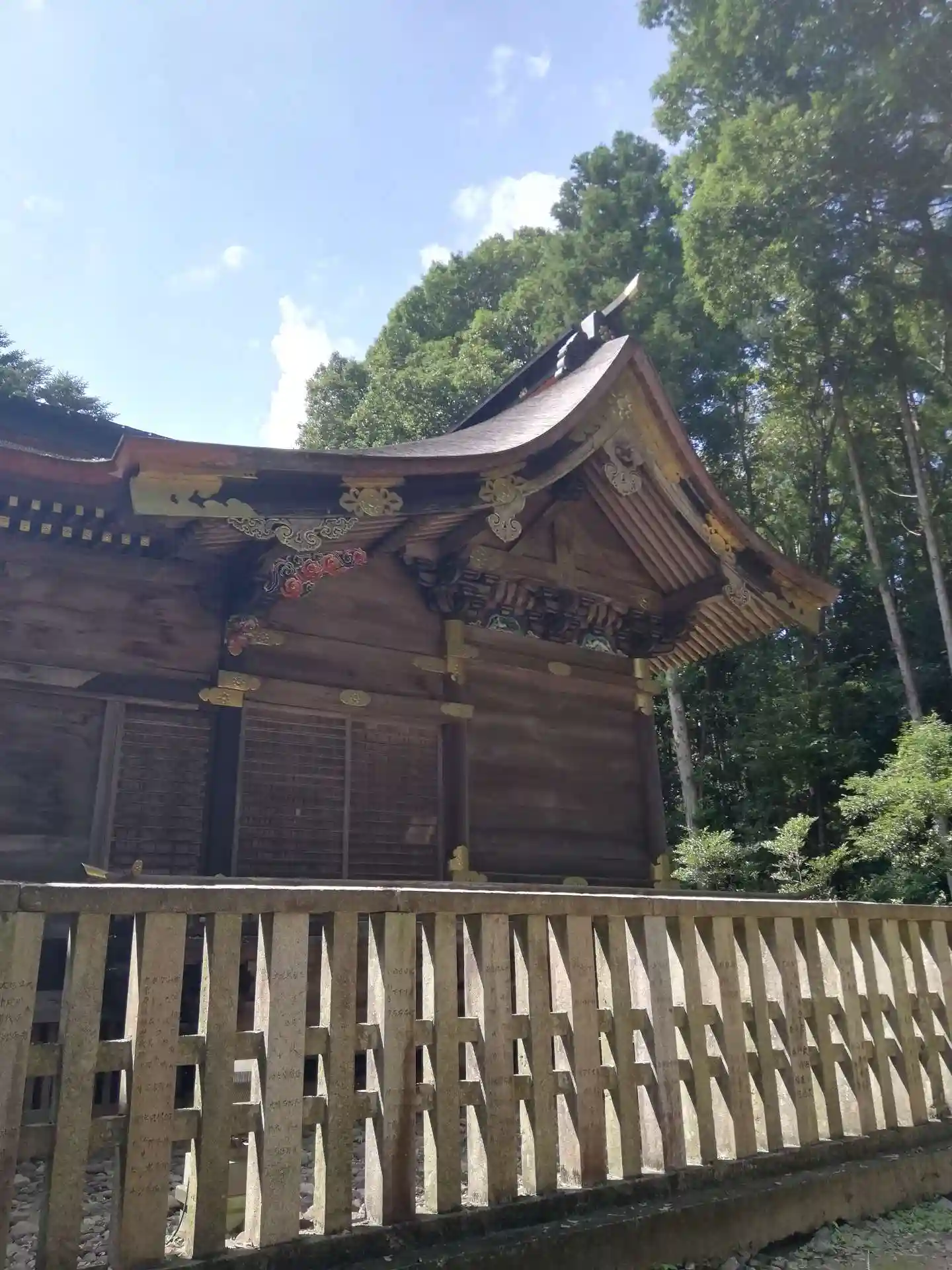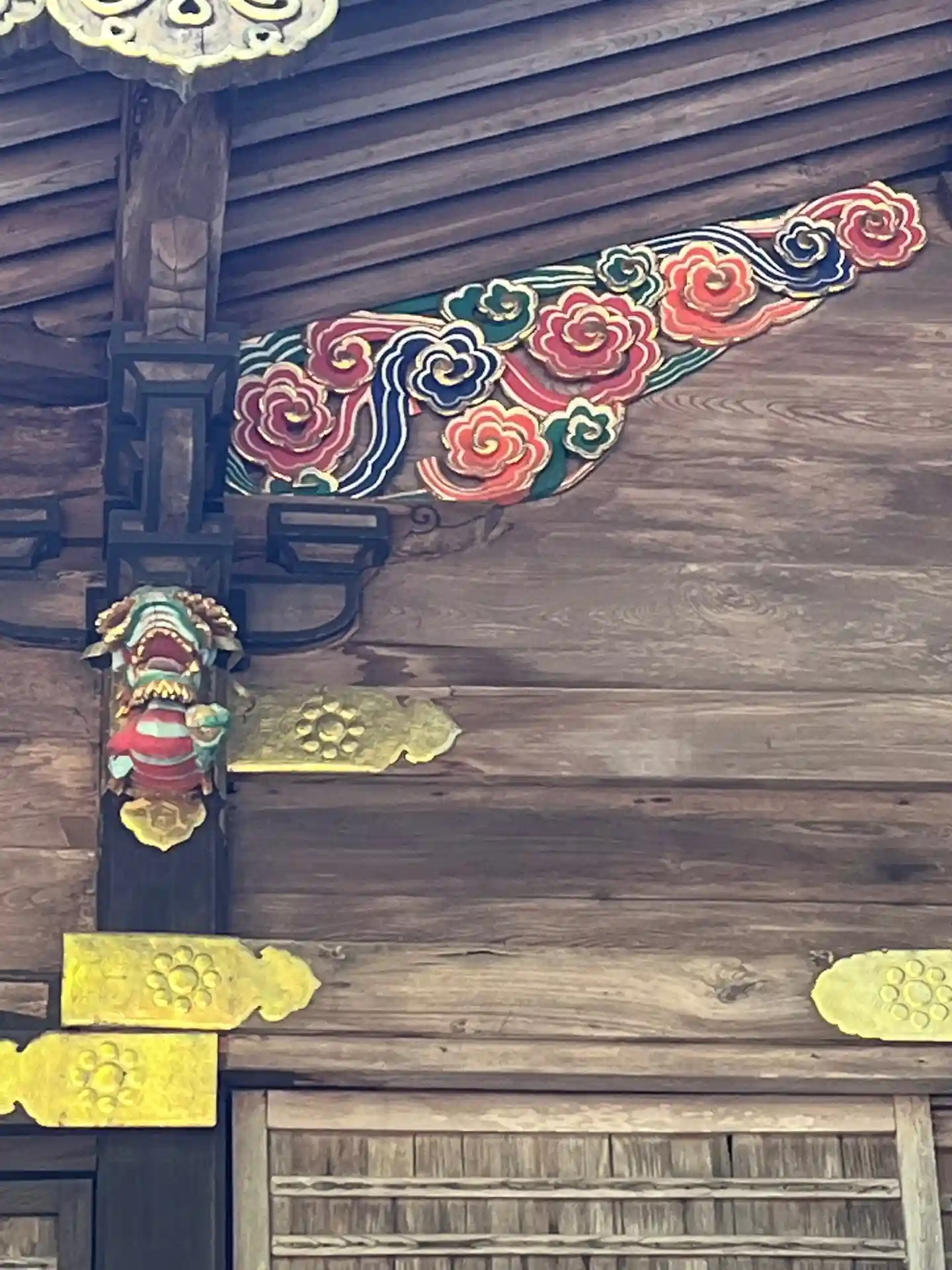 本殿上部には漆塗り、彩色、飾金具が施されている部分もありました。