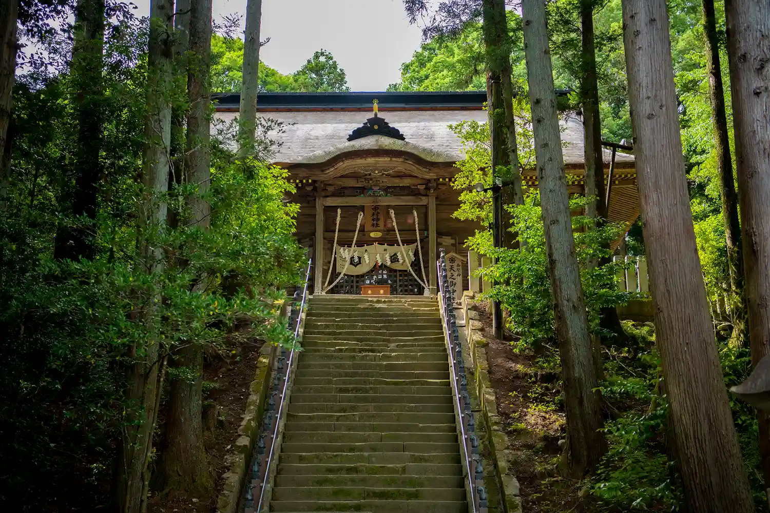 石段より拝殿を望む