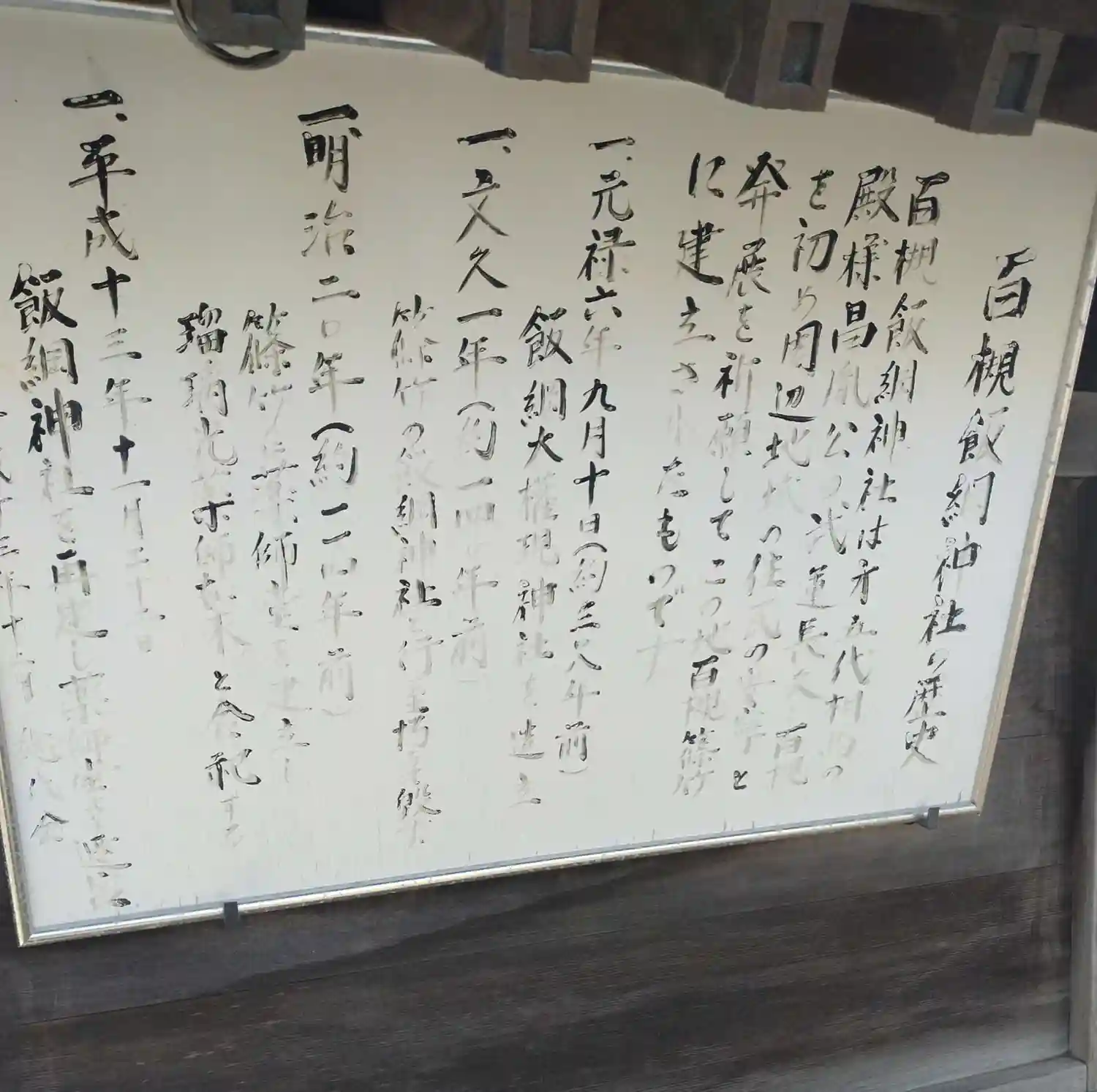 百槻飯綱神社、百槻薬師堂 お宮上部に掲げてある(百槻飯綱神社)の社額です