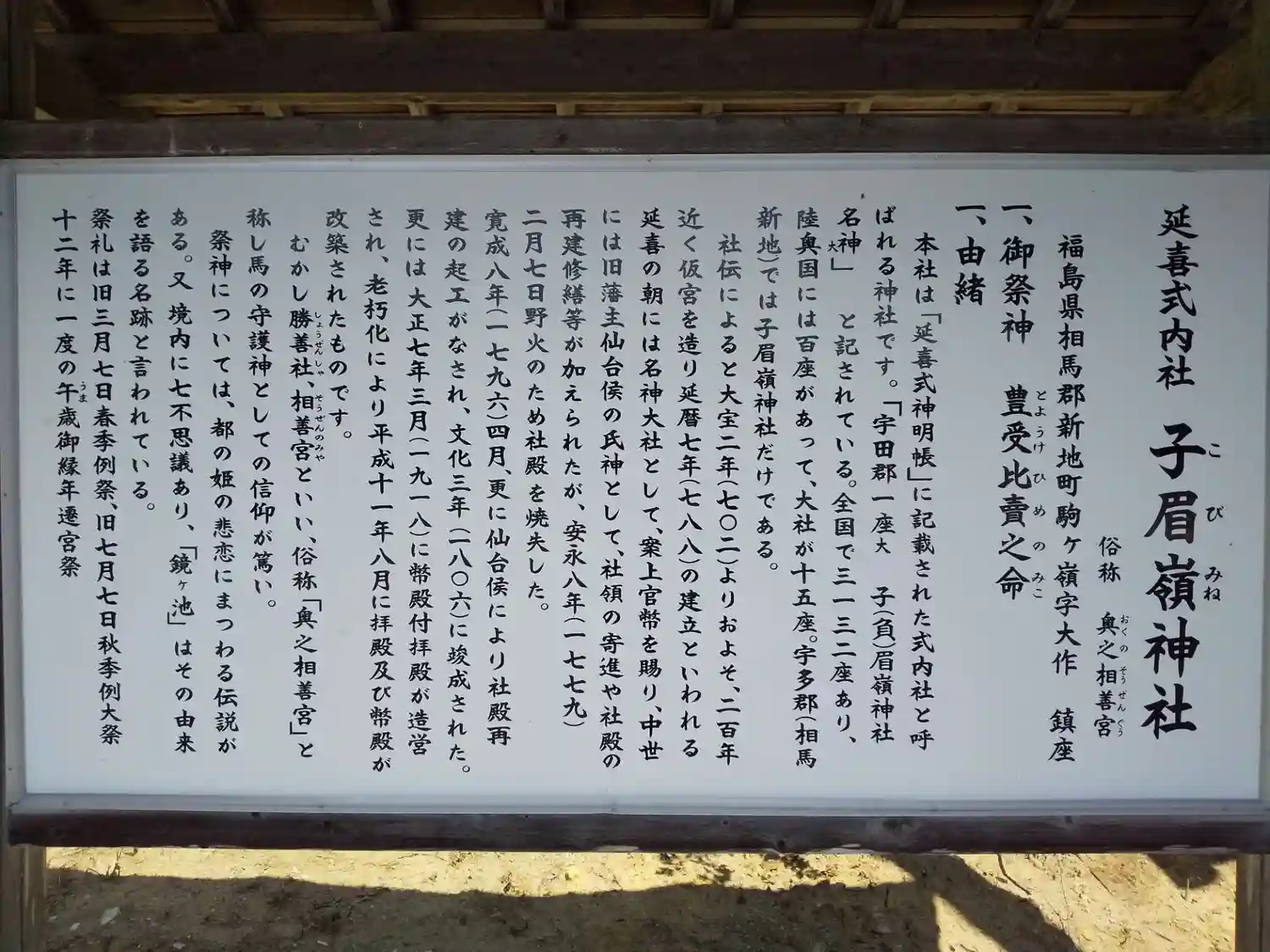 楽しみ方子眉嶺神社の御由緒・歴史