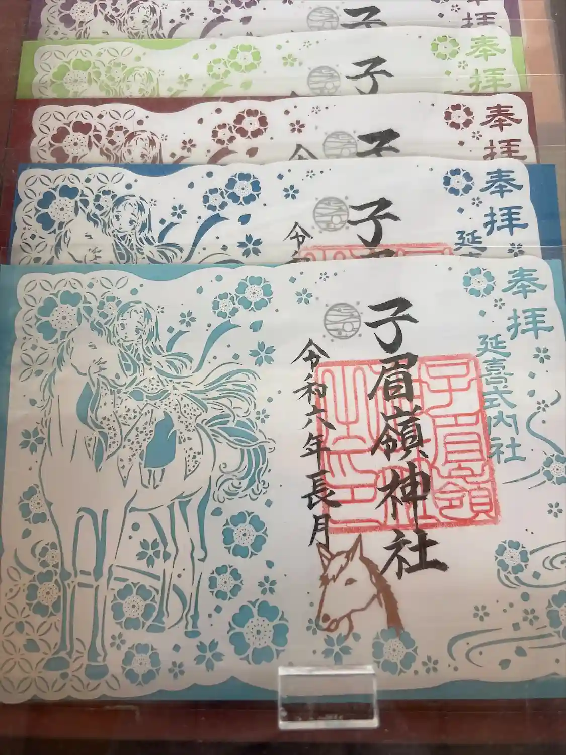 神社の由来をデザインした切り絵御朱印です。色紙の色が選べます。