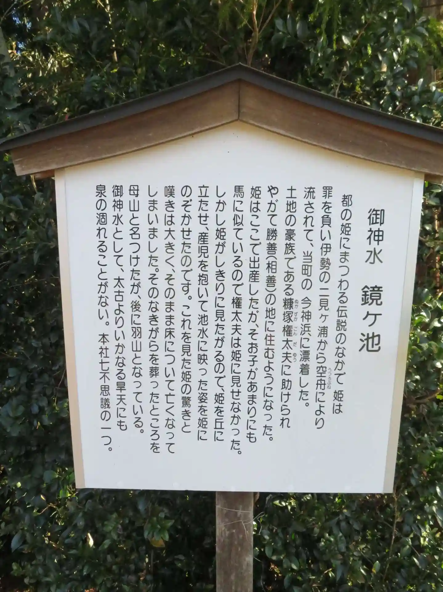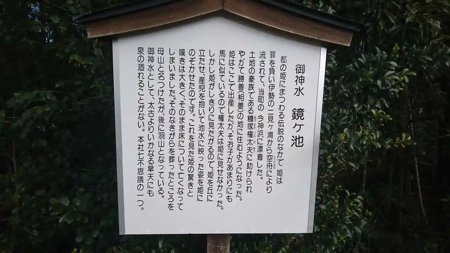 子眉嶺神社 御神水、鏡ヶ池の七不思議の一つが書かれている(伝説)です