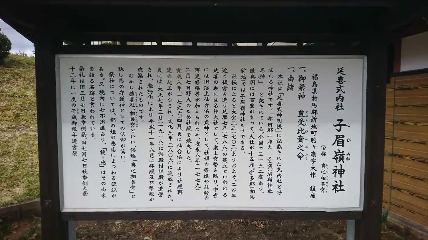 子眉嶺神社に行ってきました。奥州相馬神玉巡拝の第1番目で、「延喜式神明帳」に記載された式内社と呼ば…