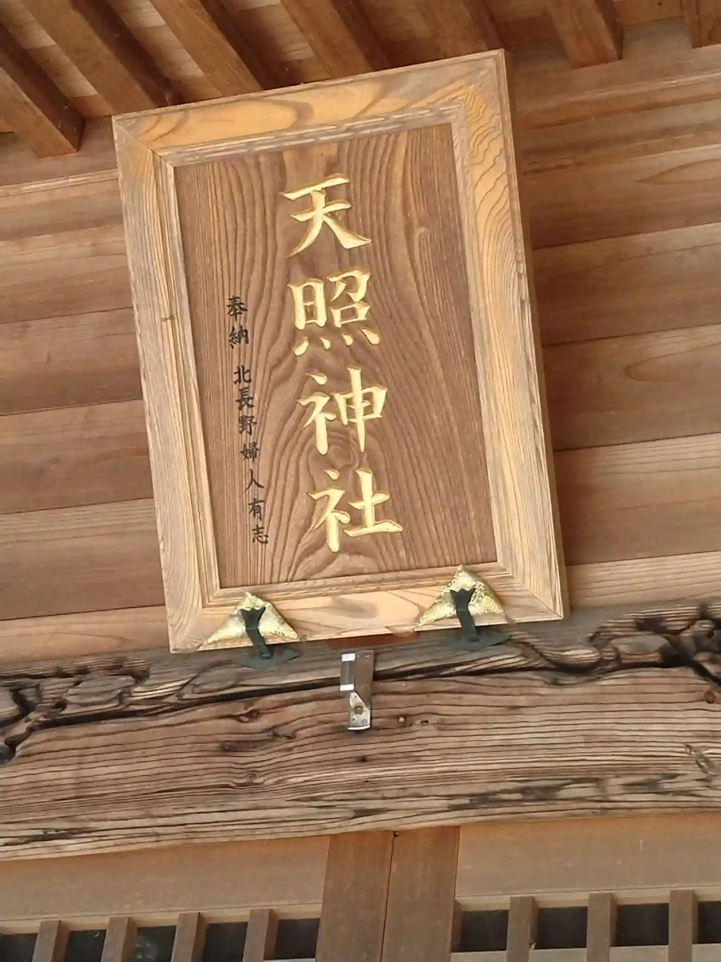 天照神社 拝殿前上部に掲げてある(天照神社)の扁額の様子です