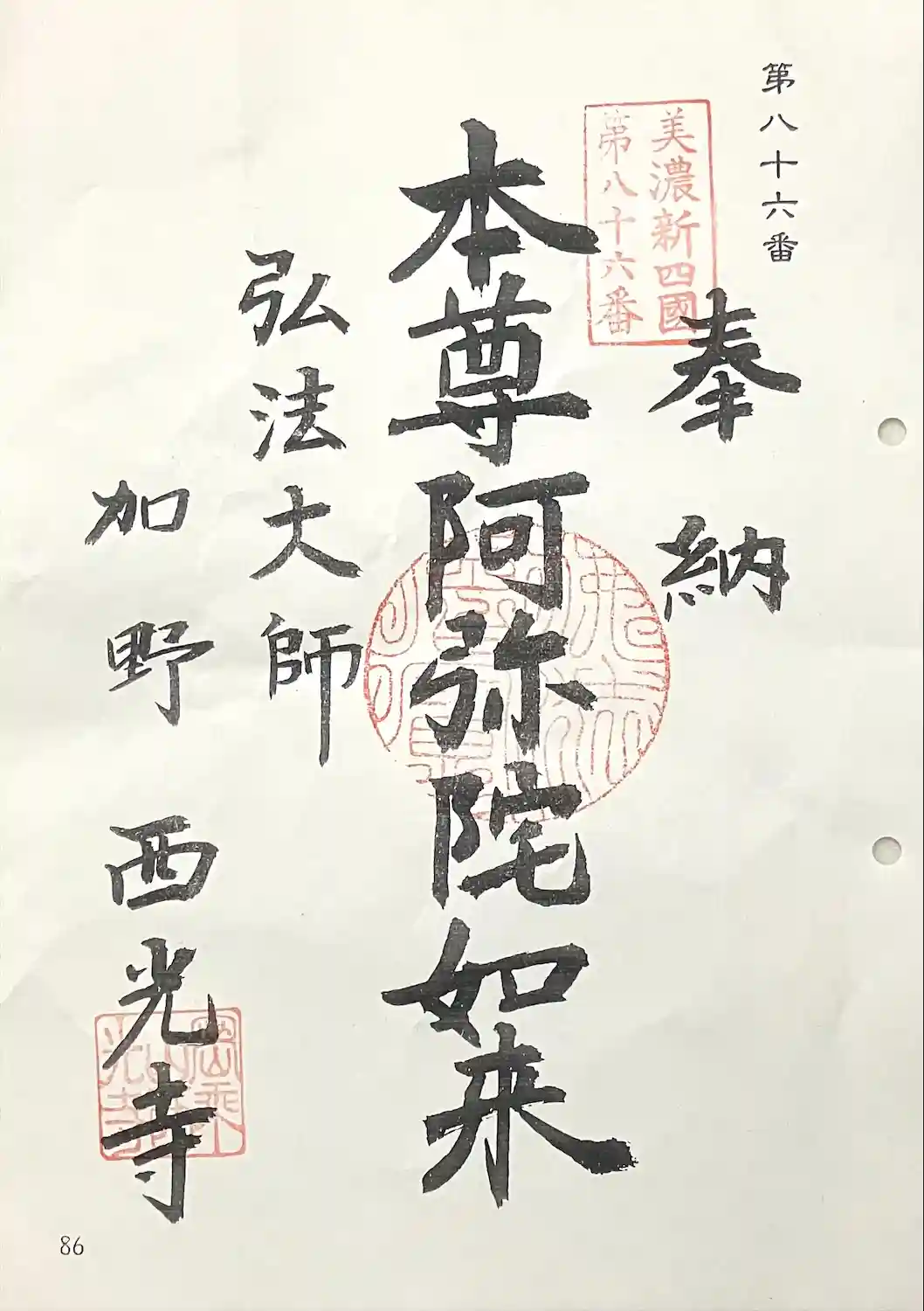 「美濃新四国」第86番札所です。