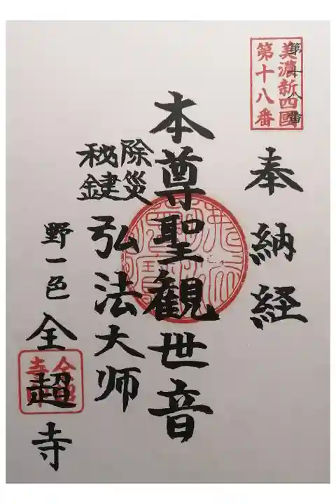 第9番札所の勝林寺でこの全超寺(第18番札所)の御朱印を頂いた