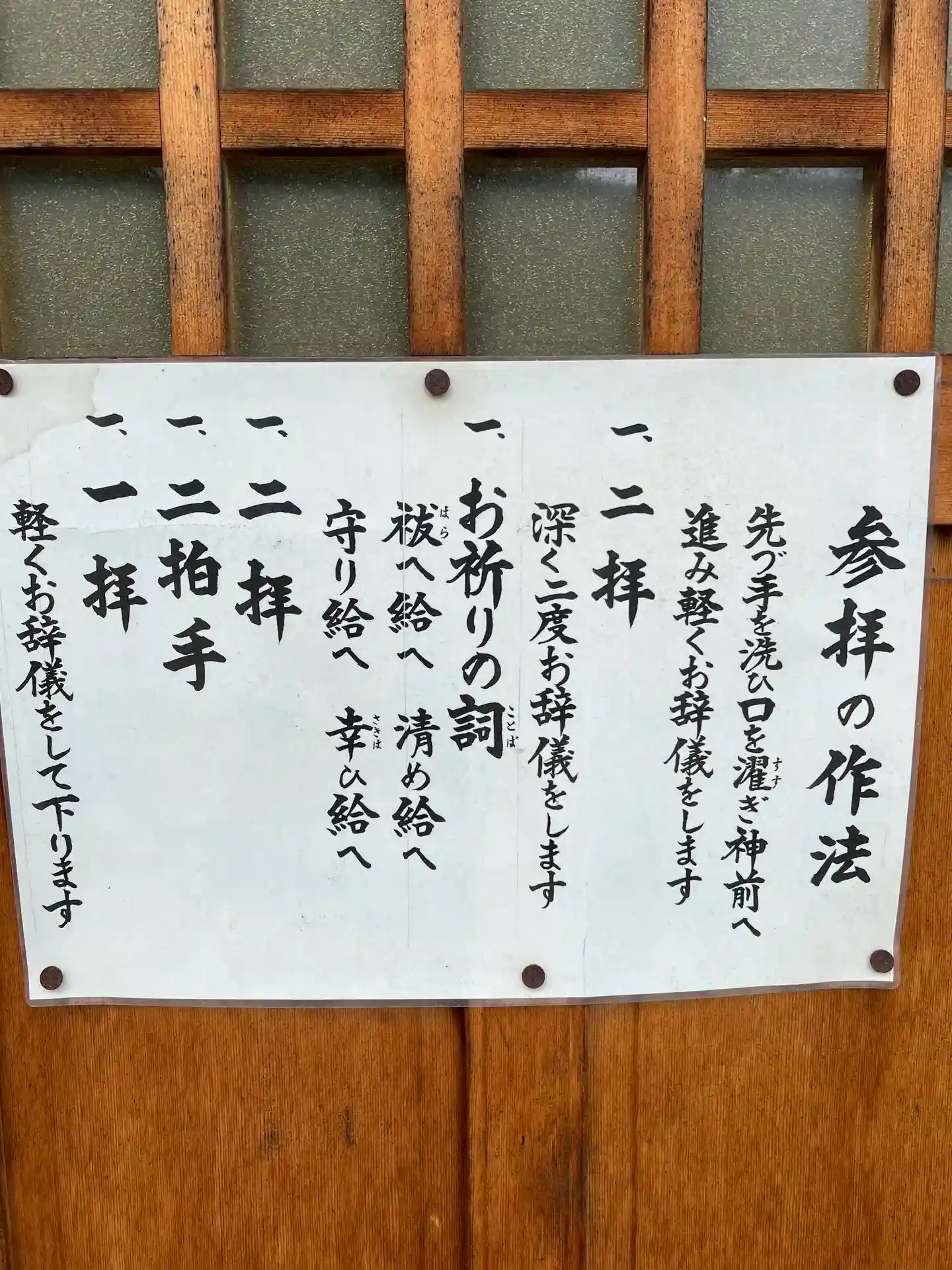 社殿のところには、参拝の作法についての事が書かれてありました。