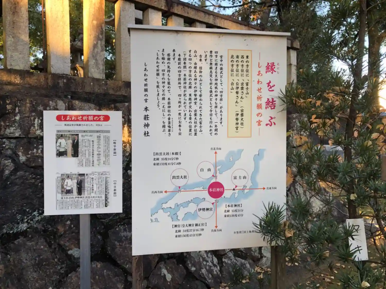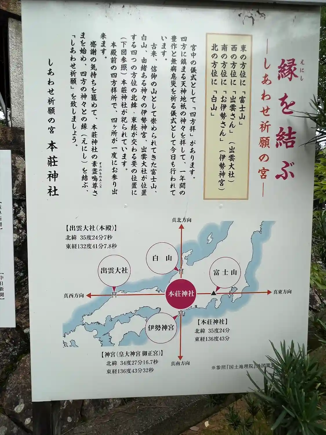 北の白山、南の伊勢神宮、東の富士山、西の出雲大社。