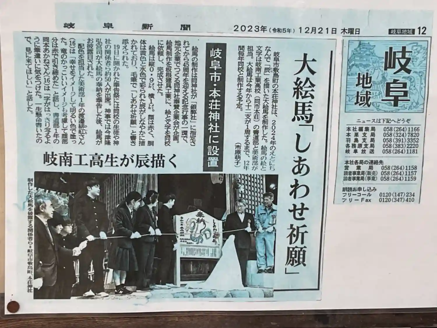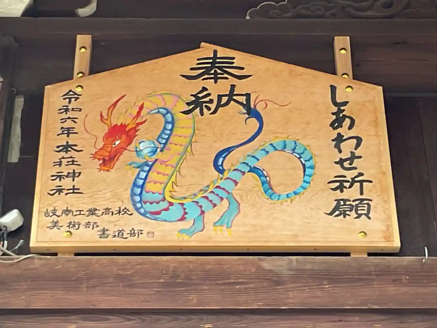 岐南工業高校美術部書道部による奉納干支絵馬