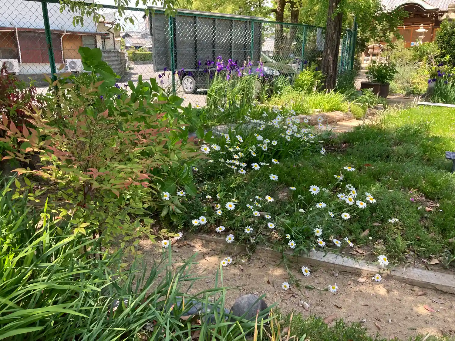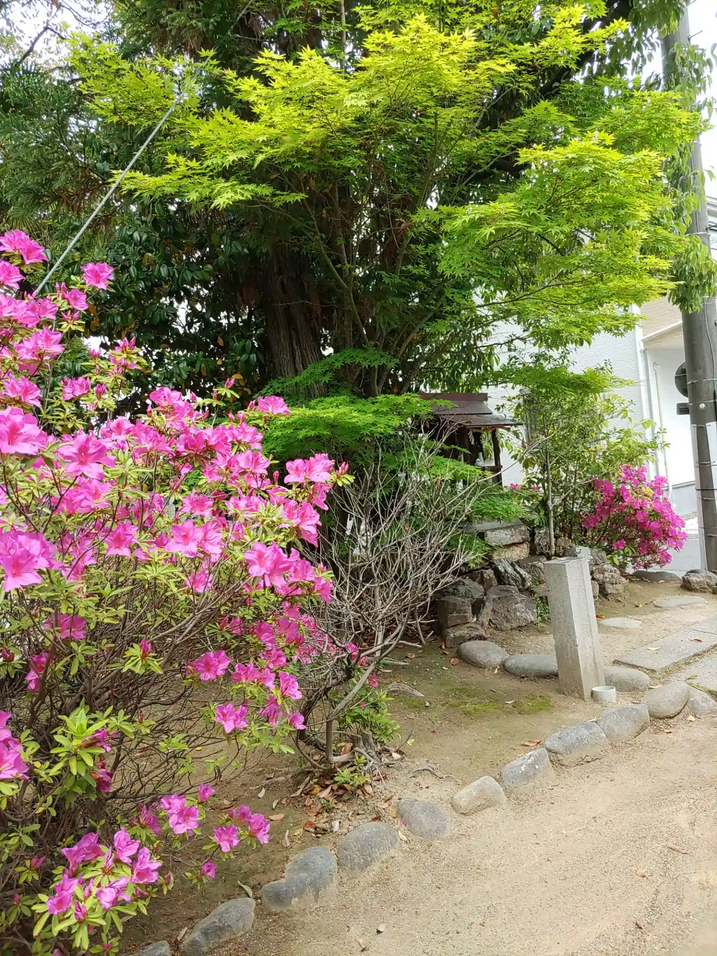 ツツジと青モミジのコントラストがステキです