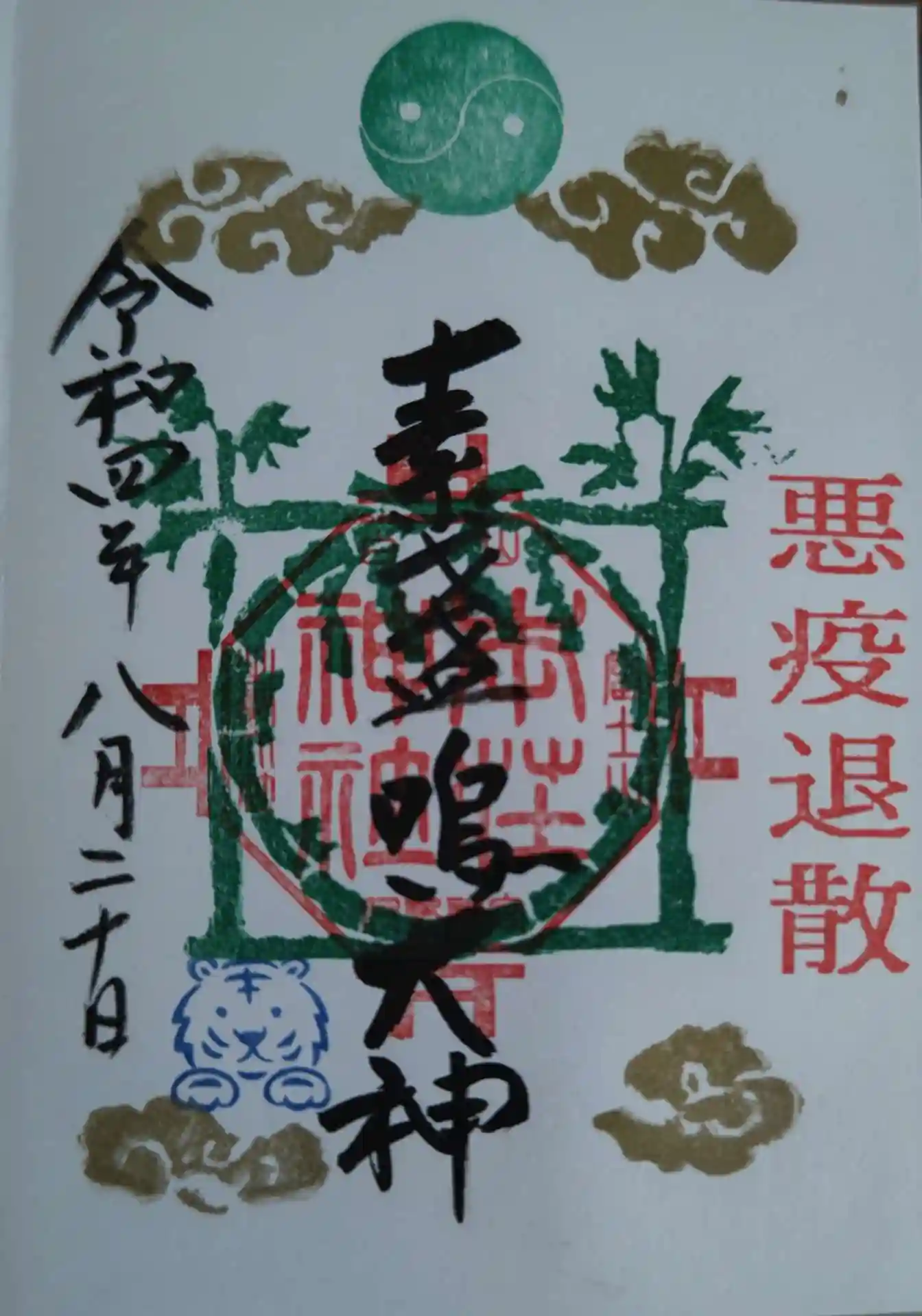 こちらは、通常直書き御朱印・8月の直書き御朱印です。