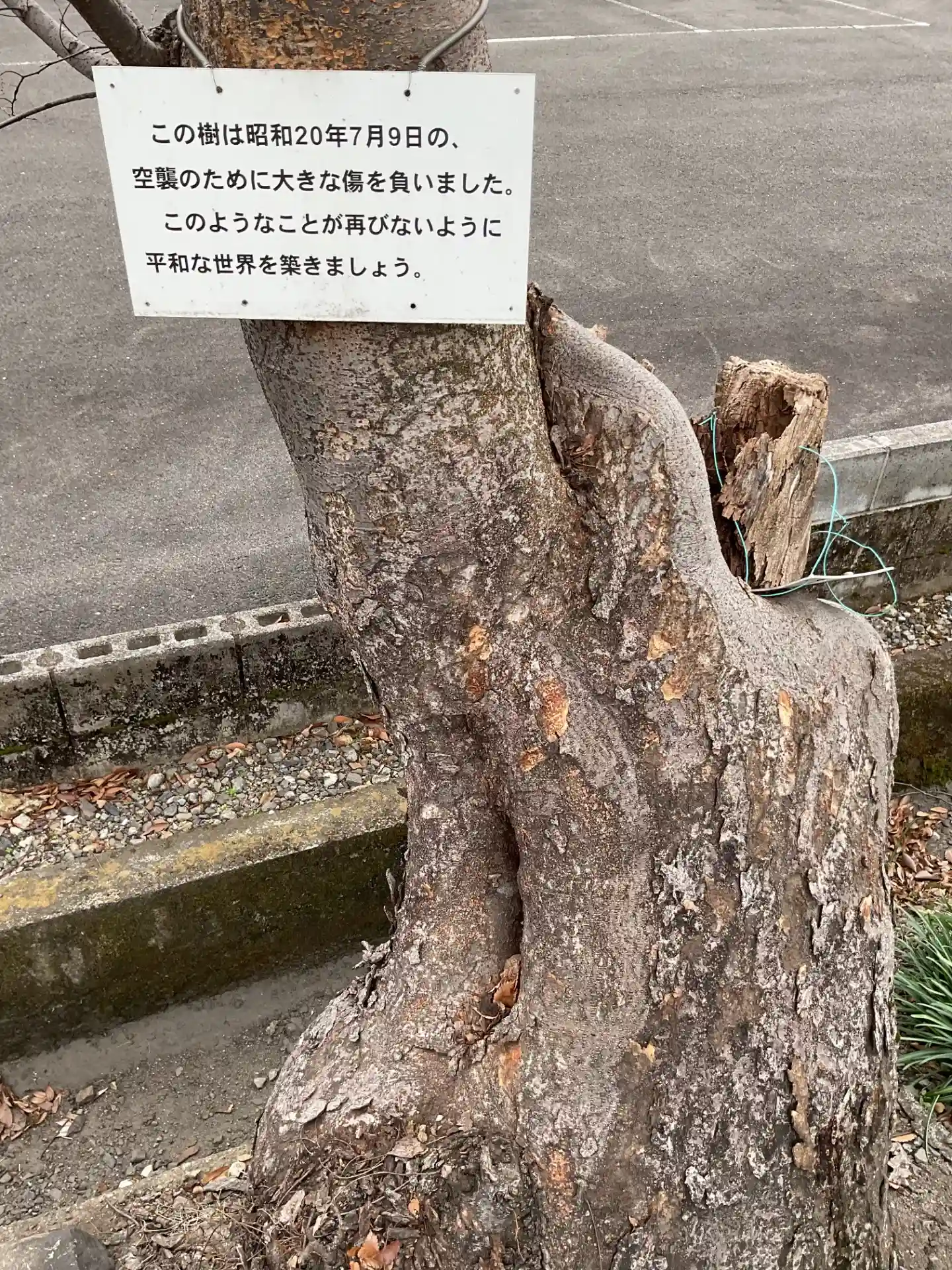 岐阜空襲の痕跡がある木です。