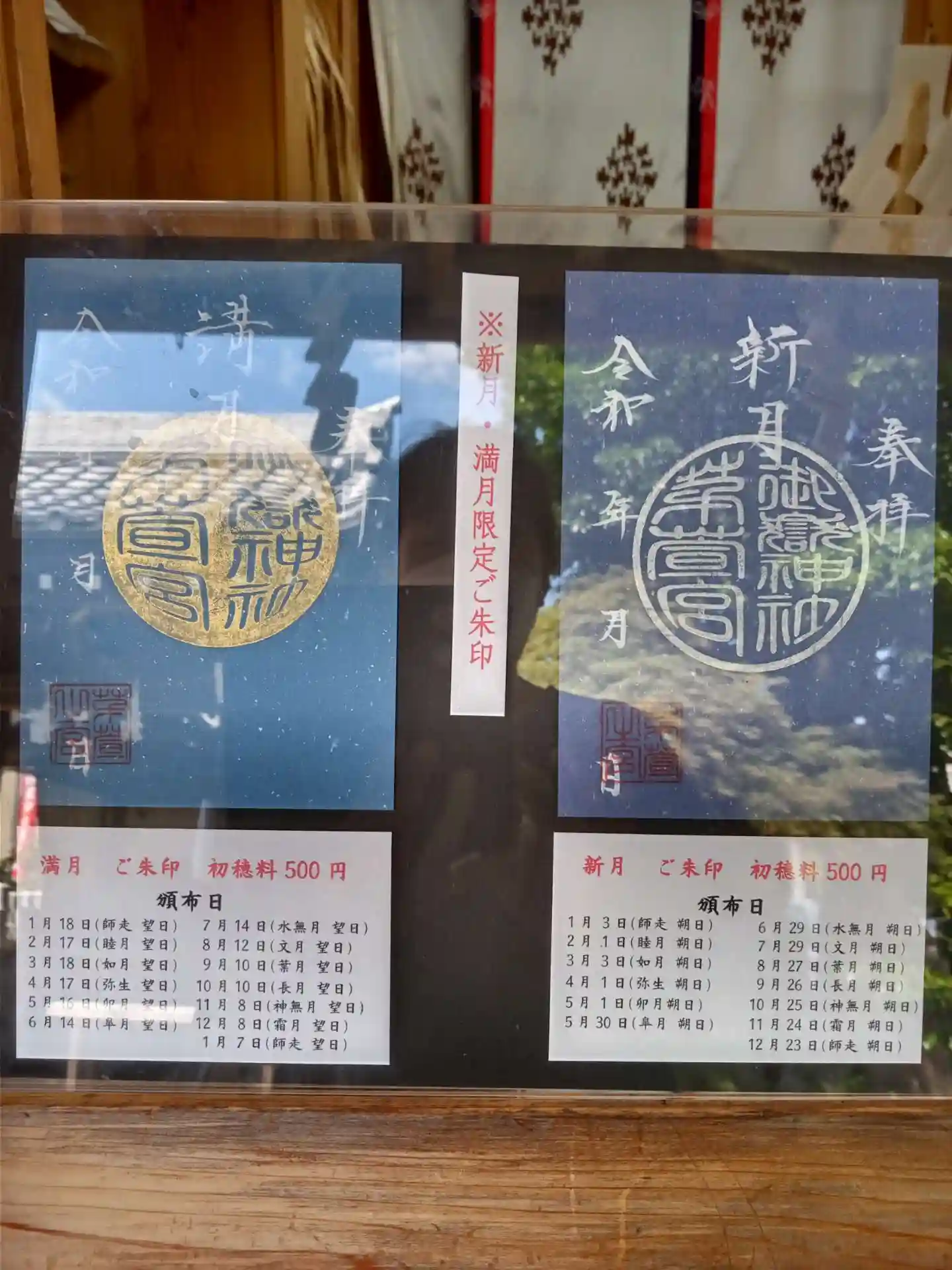 夏詣巡り以外の時にも季節の行事に合った御朱印を出されています。特に新月と満月の日に頂ける青の御朱印は、毎月頂ける日が違うので要チェックです。因みに7月は、満月御朱印が14日、新月御朱印が29日になります。