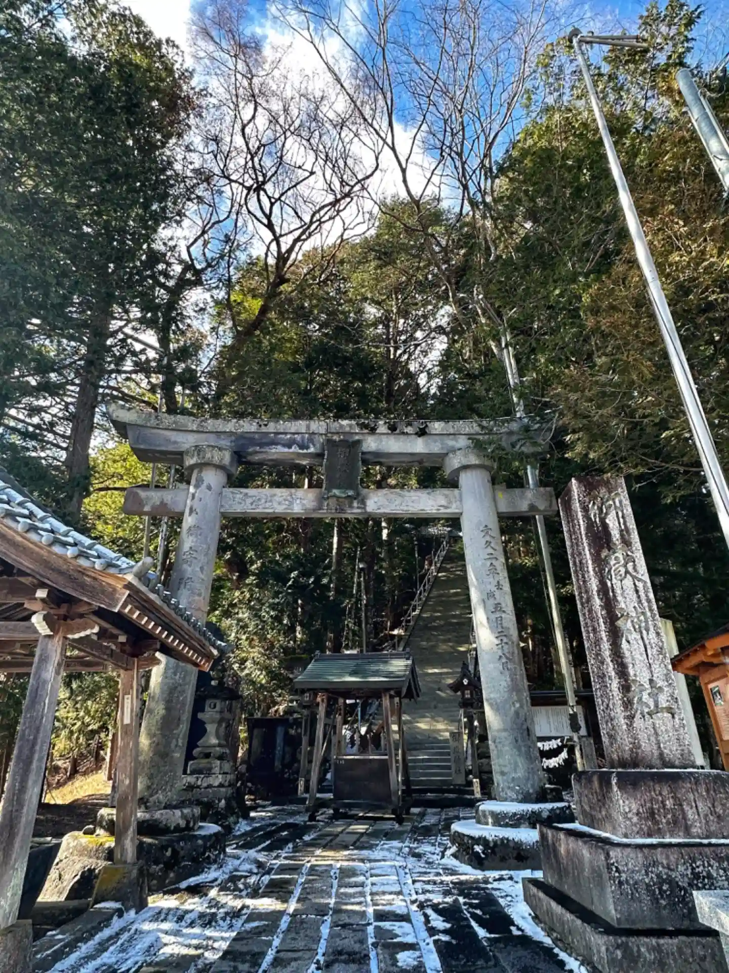 風もあり大変寒い中、里の宮、霊神場とお参りを済ませ