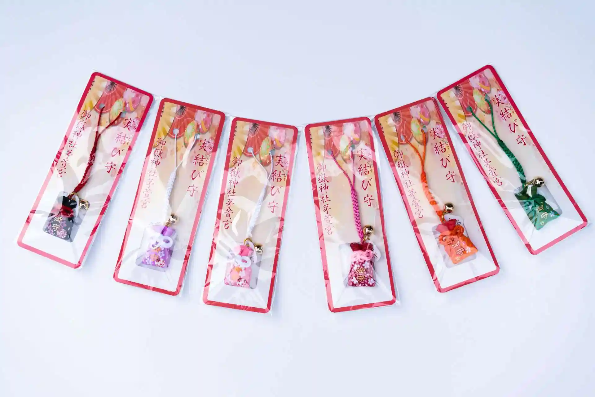 赤・青・白があります。お好きなお色のお守りをお選びください。