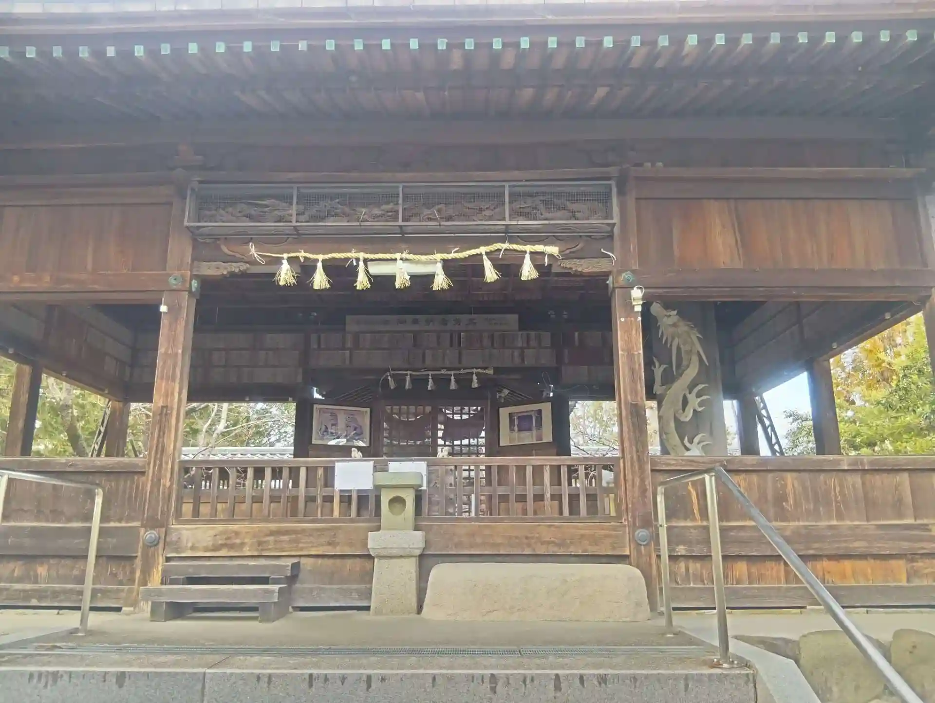 拝殿にある彫刻は、左甚五郎作のものではなく、本物はどこかに安置されているそうです。