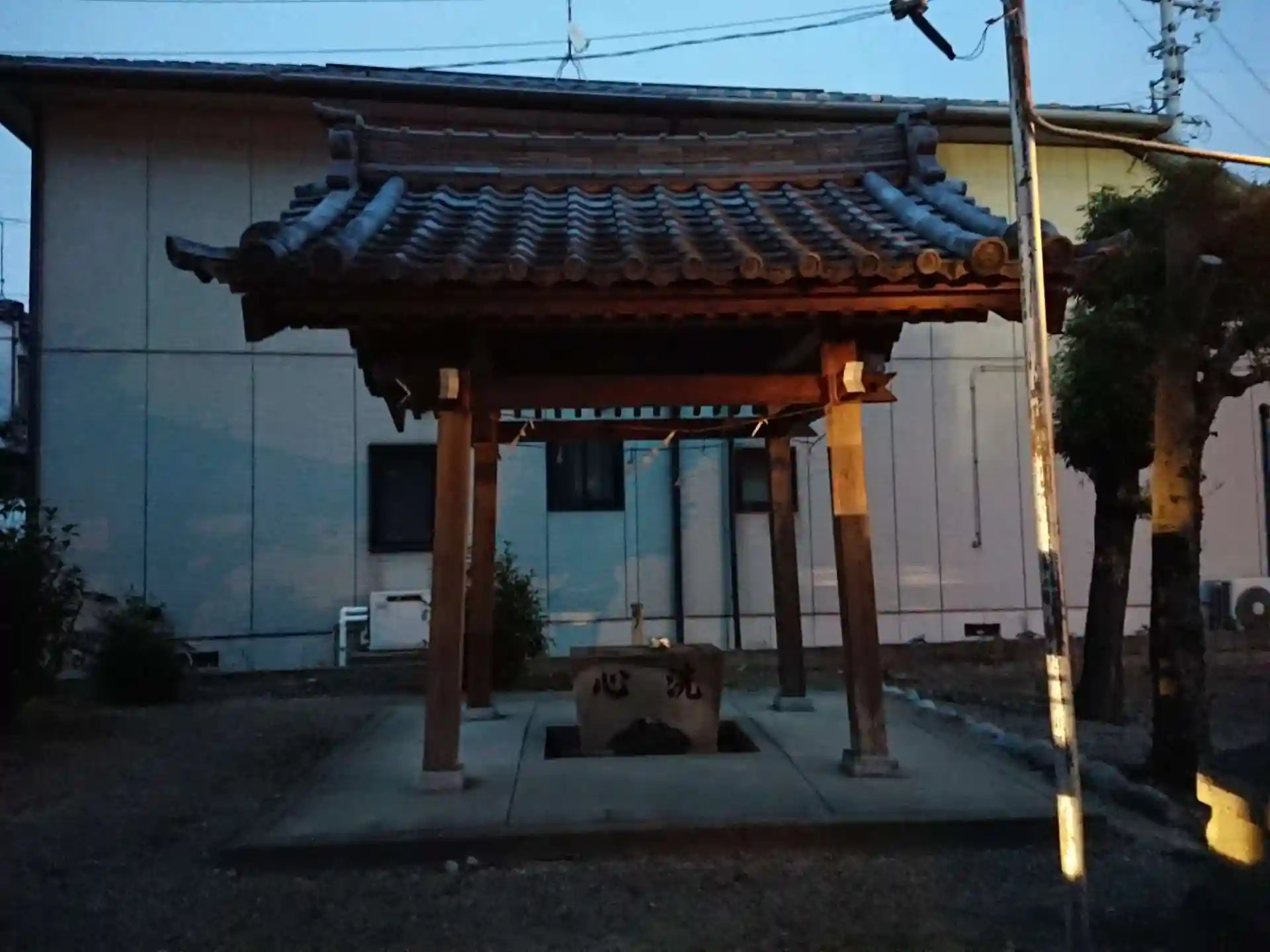 開けた道路がすぐ前にあります。地域の神社です。