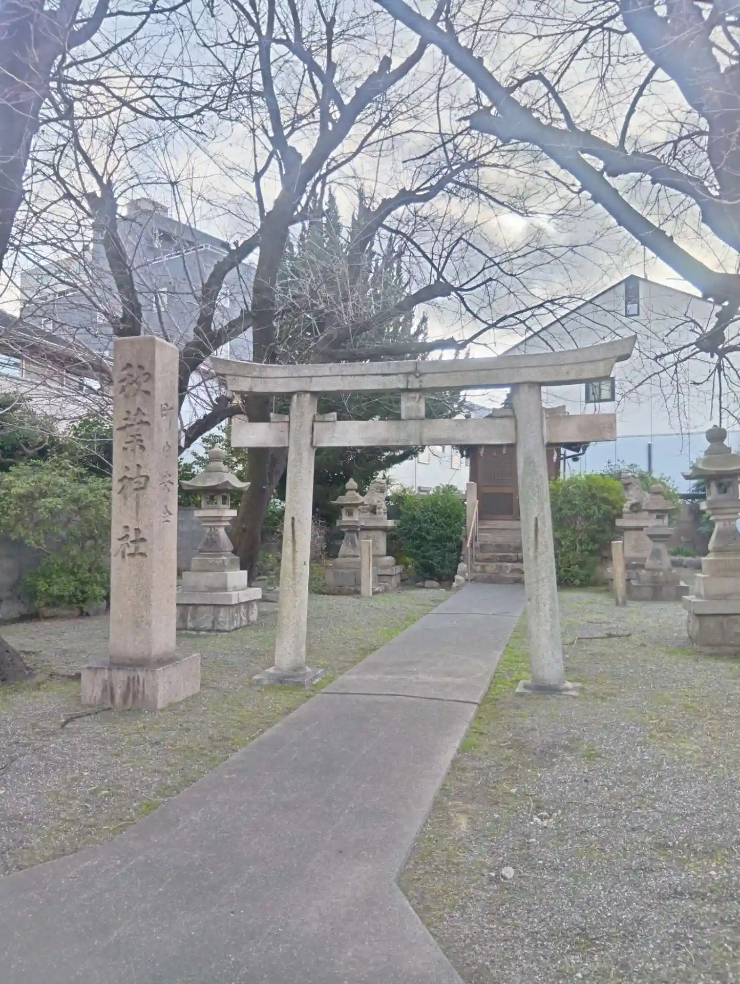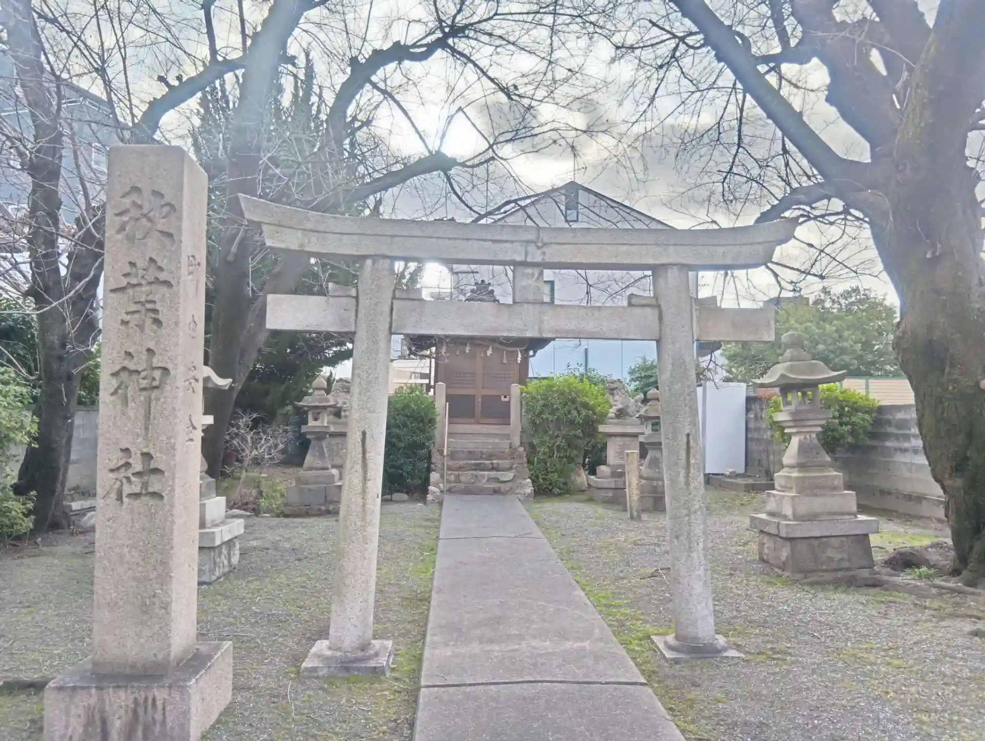 岐阜県岐阜市加納清水町1丁目、岐阜駅より南東へ徒歩5分ほどにある「秋葉神社」を参拝させていただきました。地域の方々が大切になさっている神社です。朝早くに伺いましたが、通勤途中の方やご近所の方が立ち止まり、参拝なさっていました。境内に古い桜の木があり、まもなくきれいな桜の花を楽しむことができます。車がすれ違えないような細い道沿いにあり、駐車場もありません。老舗サカエパンの南側の道路を東へ進むと、突き当たり正面右手にあります。