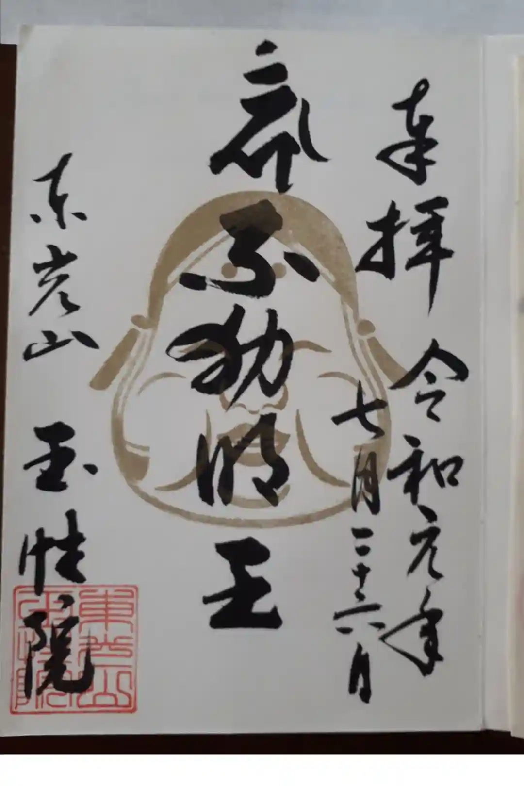鬼の面妖の書き置き御朱印です、ご本尊の不動明王は金墨です。