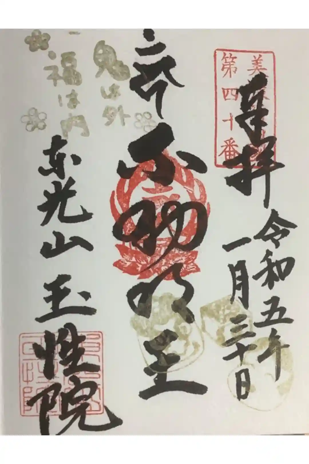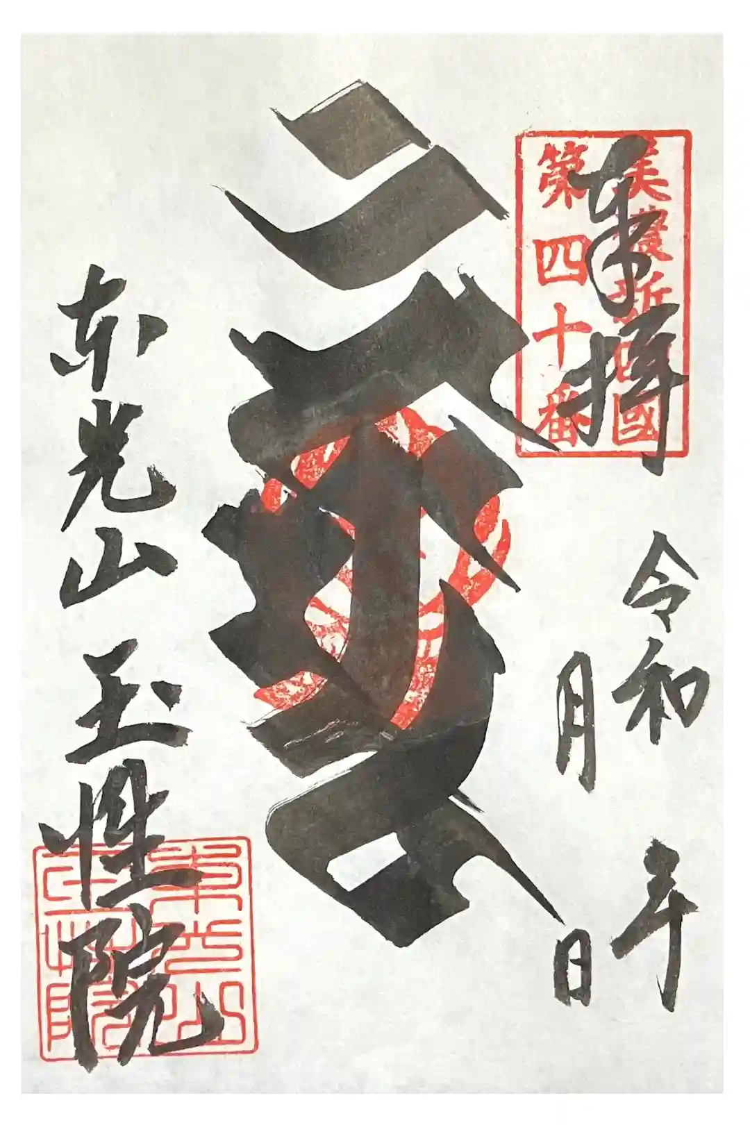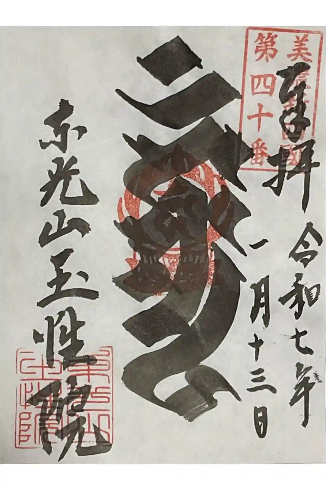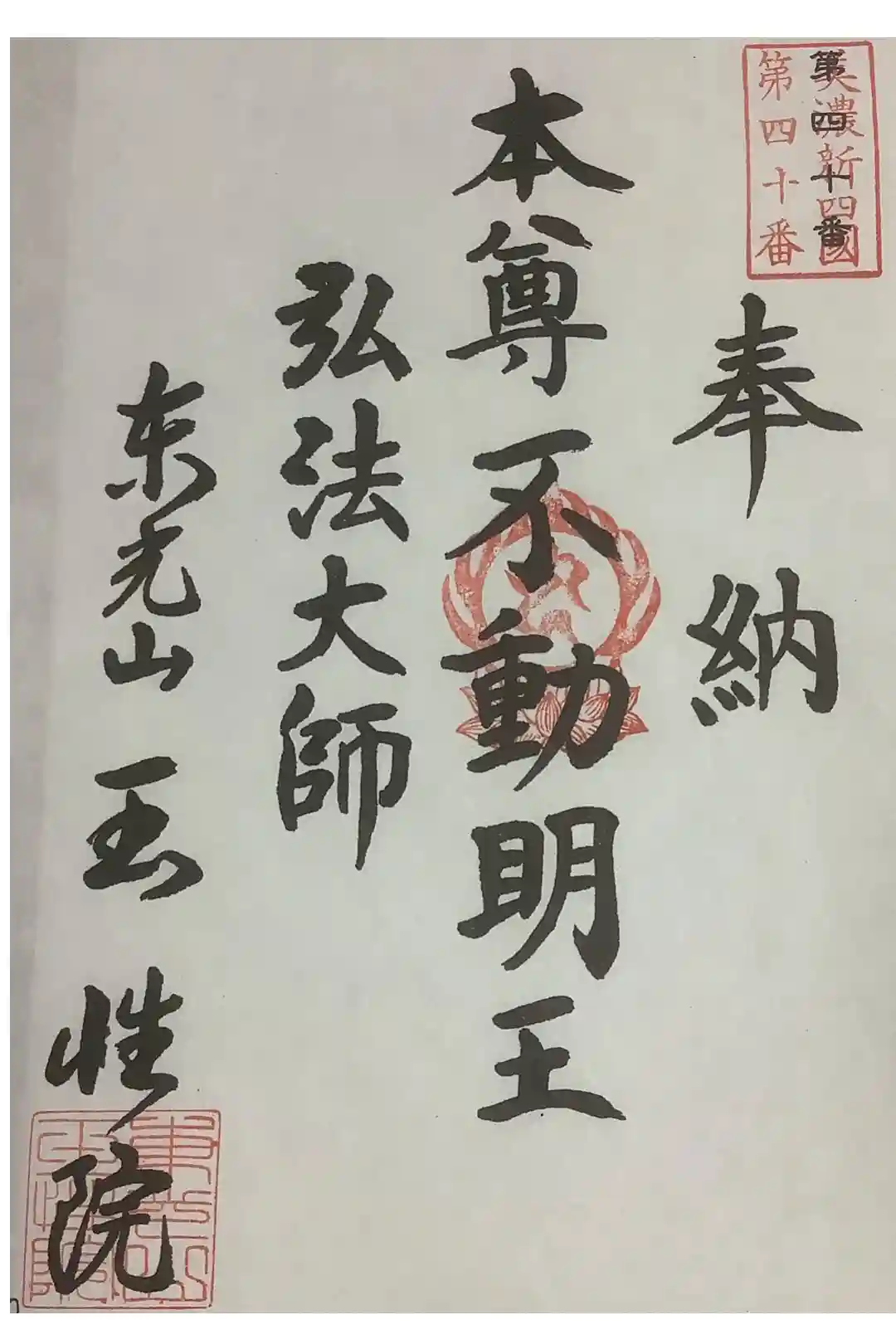 新四国八十八ヶ所霊場第40番の朱印です。バインダーに綴じます。