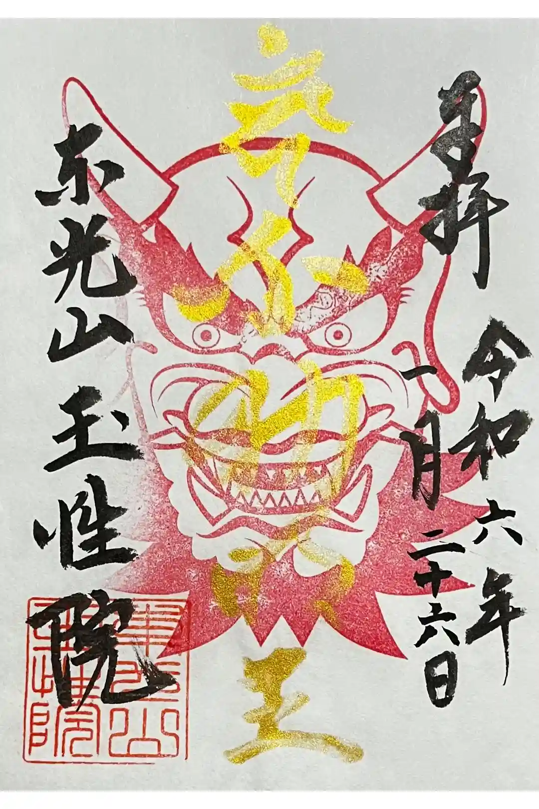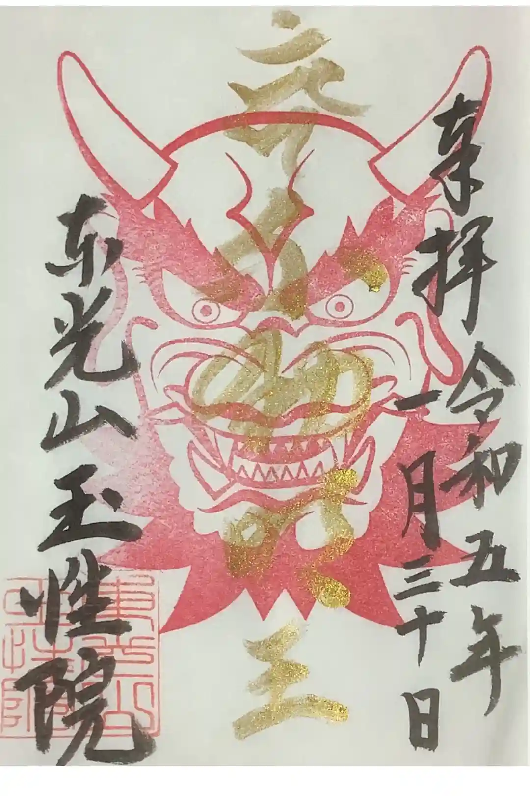鬼の面👺で金墨で書かれた御朱印です。
