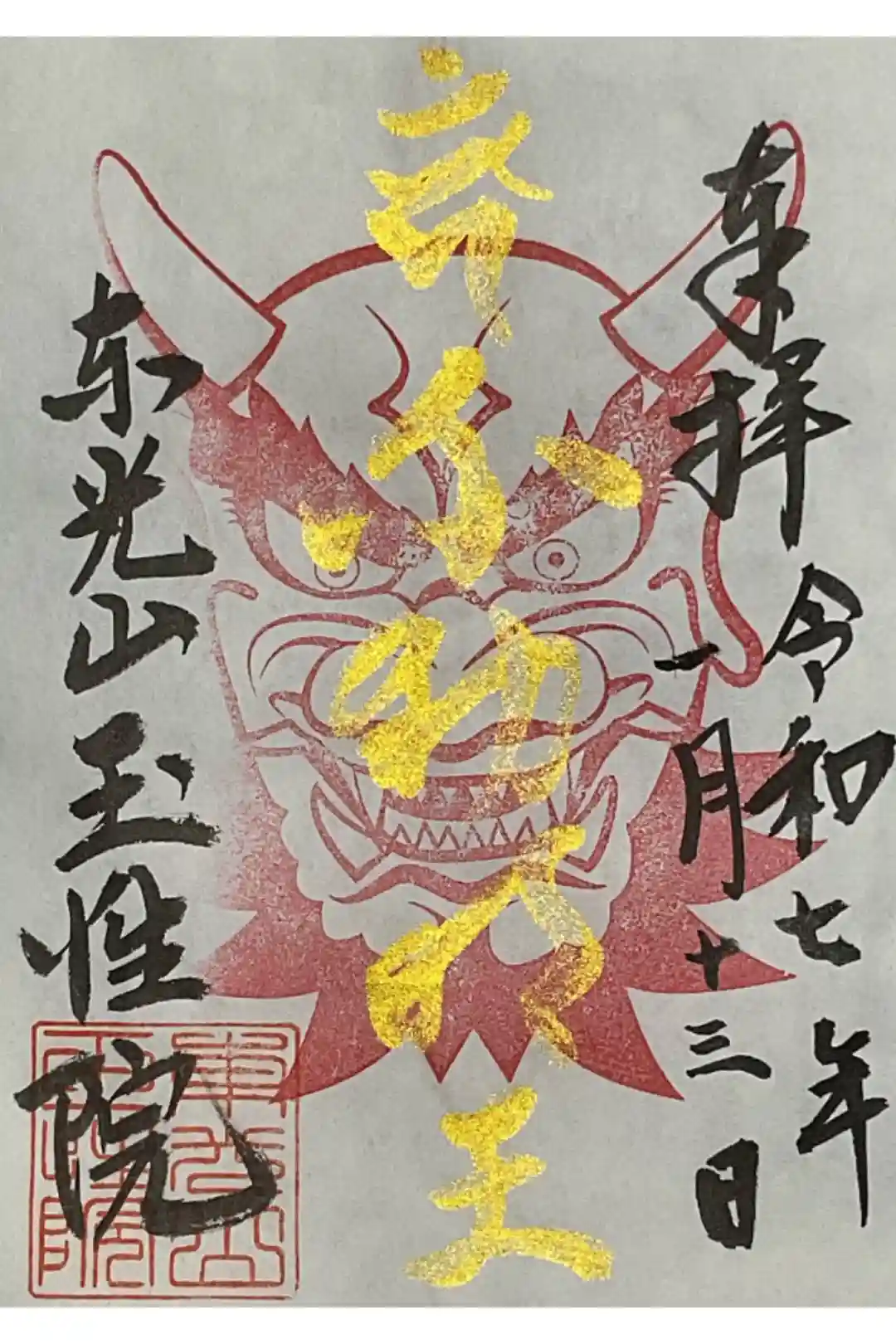 金の御朱印(毎月最終金曜日限定)。鬼の印です(書置き)。