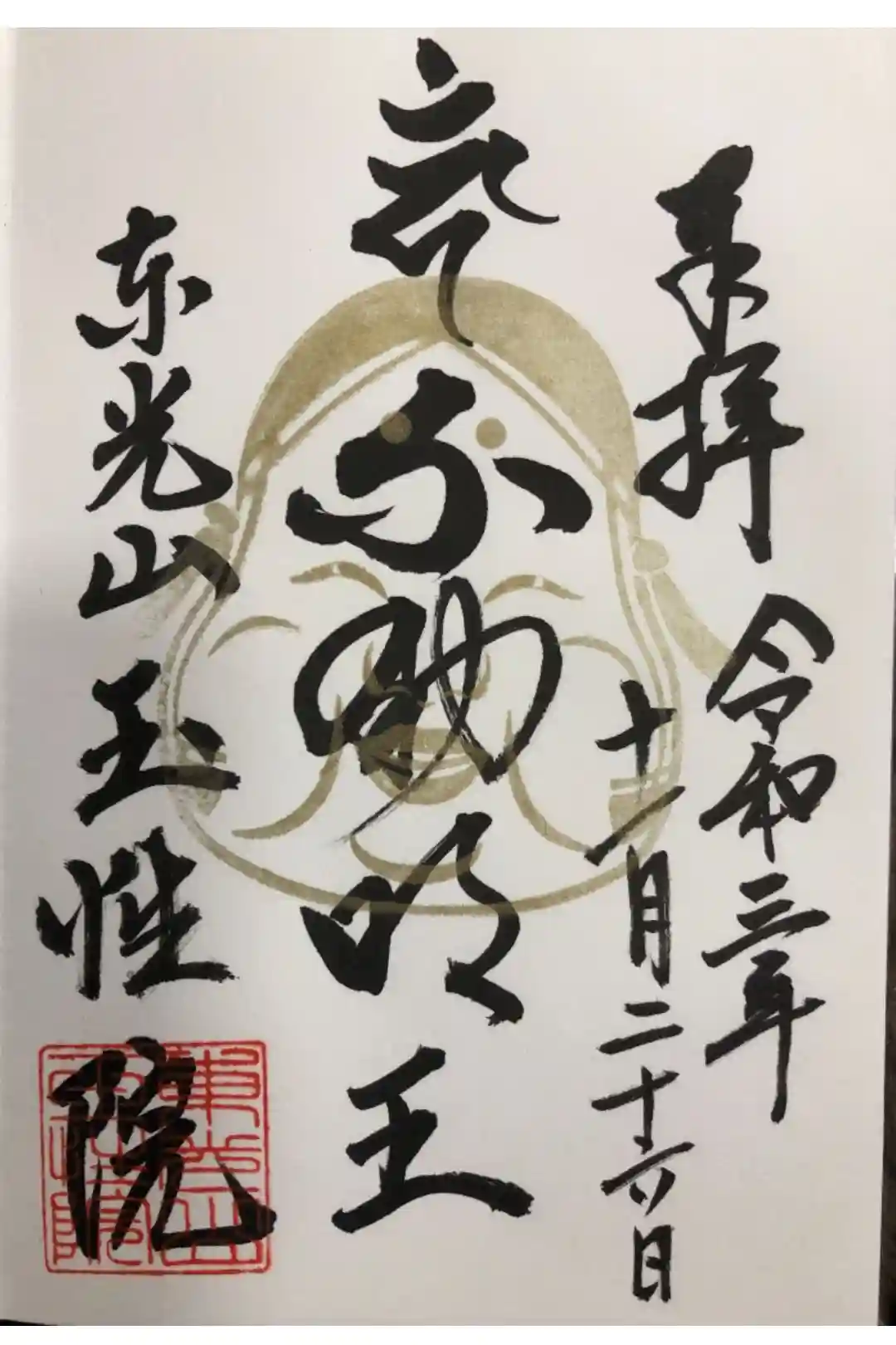 鬼の面妖の書き置き御朱印です、ご本尊の不動明王は金墨です。
