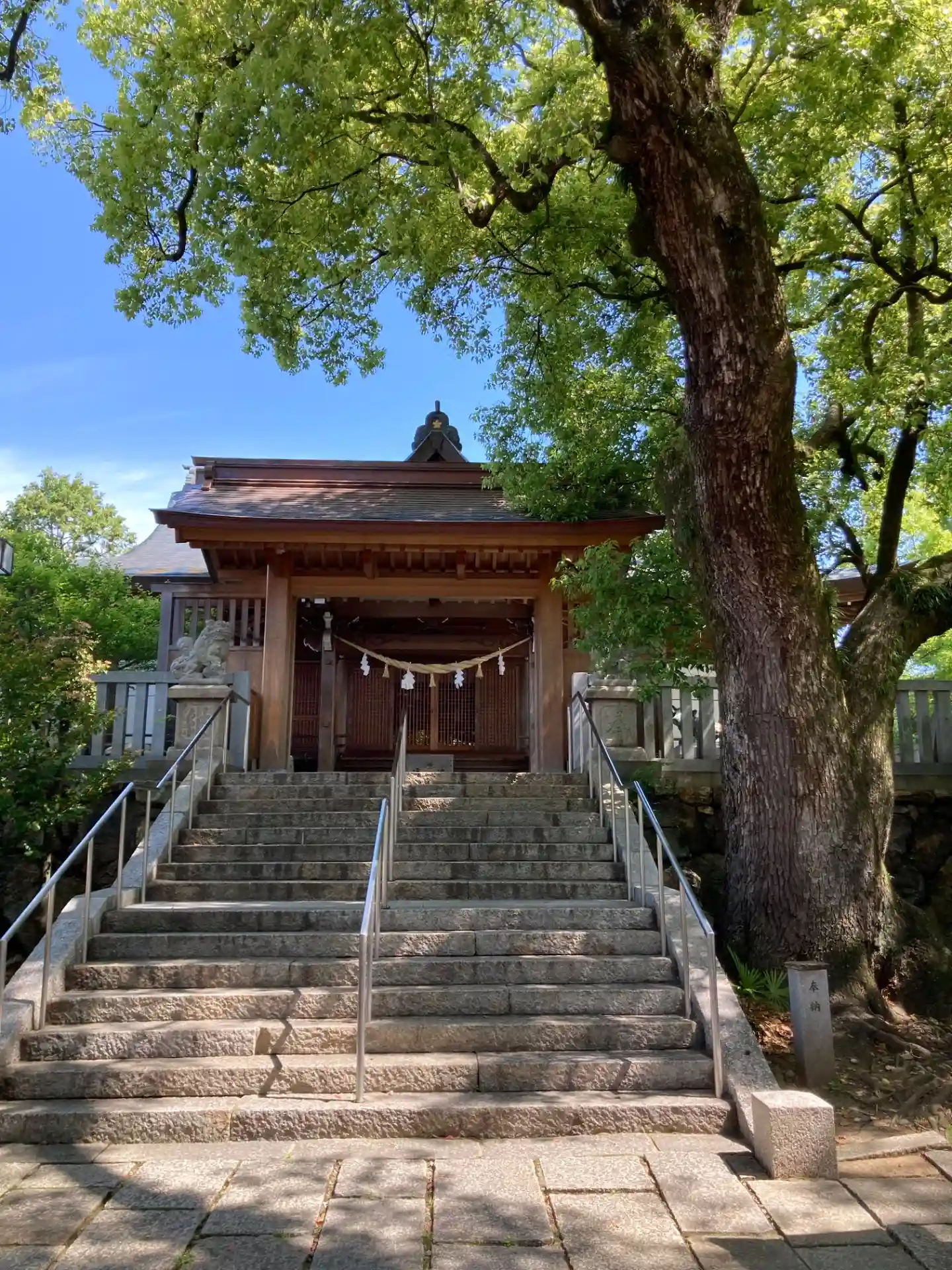 静かでよい神社です。境内にとても大きな木があります。階段登って本殿行くと牛さんがいます。