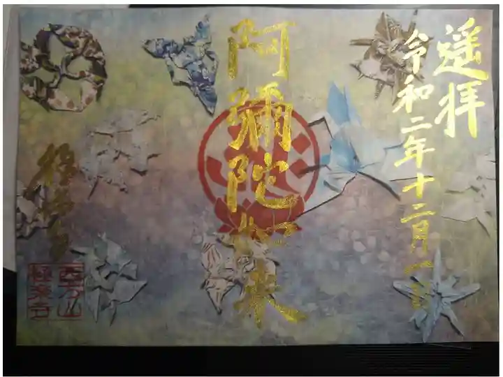 冬限定御朱印<冬のにおい> 黒系を基調にカラフルな折り紙模様をちりばめた御朱印