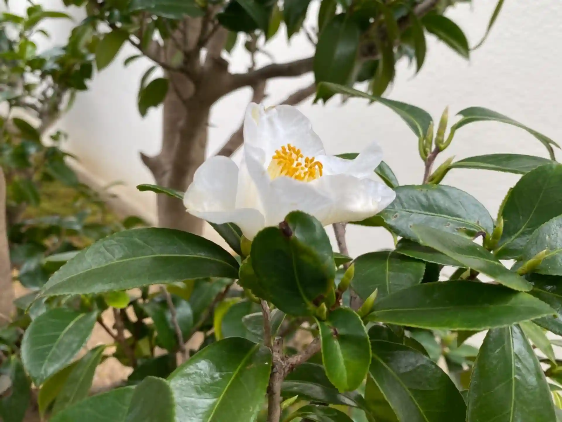 庭のセンリョウや椿が、彩りを添えています。