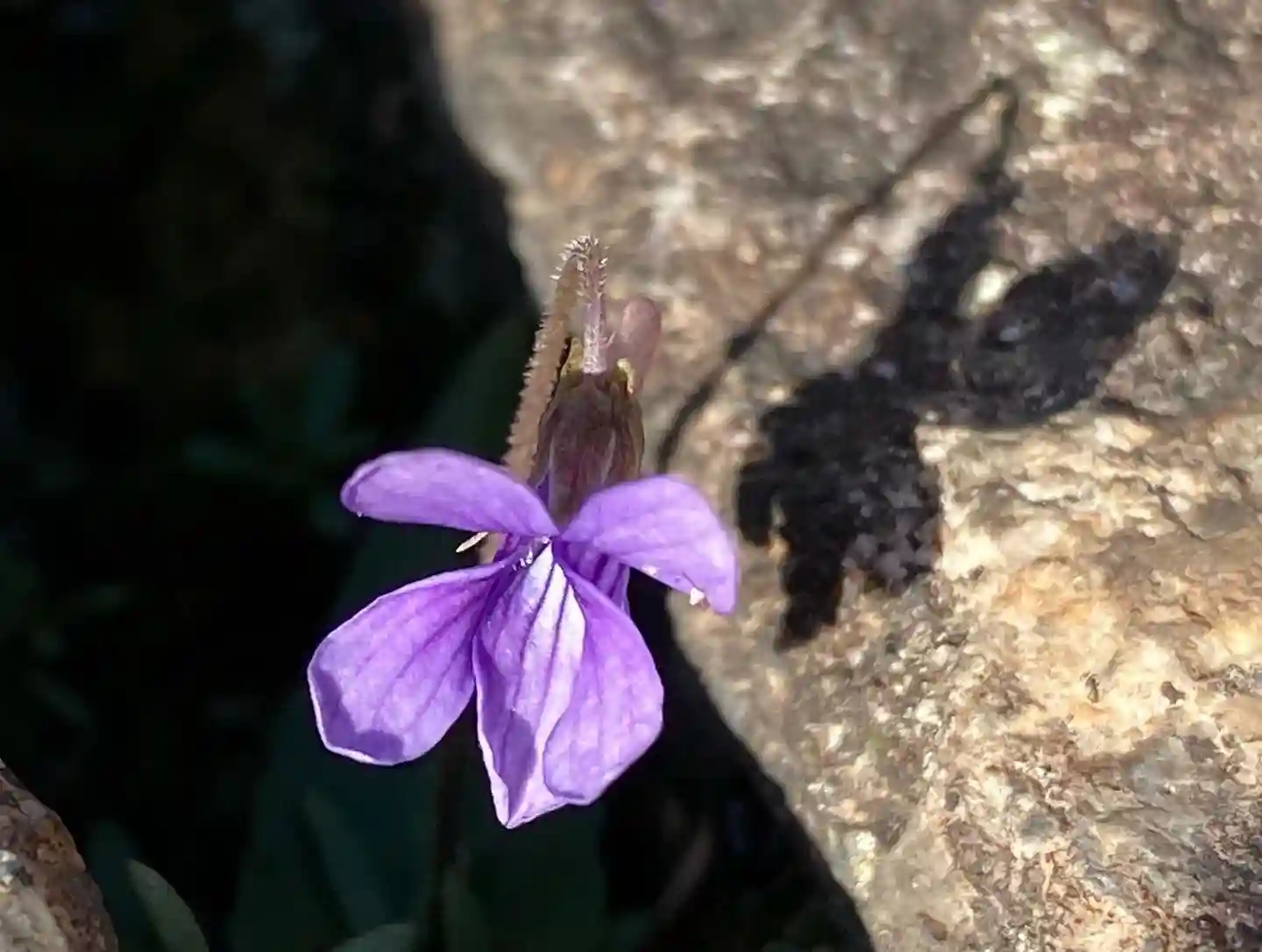 春になると、西方山極楽寺ではスミレに似た花(花弁4枚と特徴的ですが種類不明)が、自然と咲き始めます。