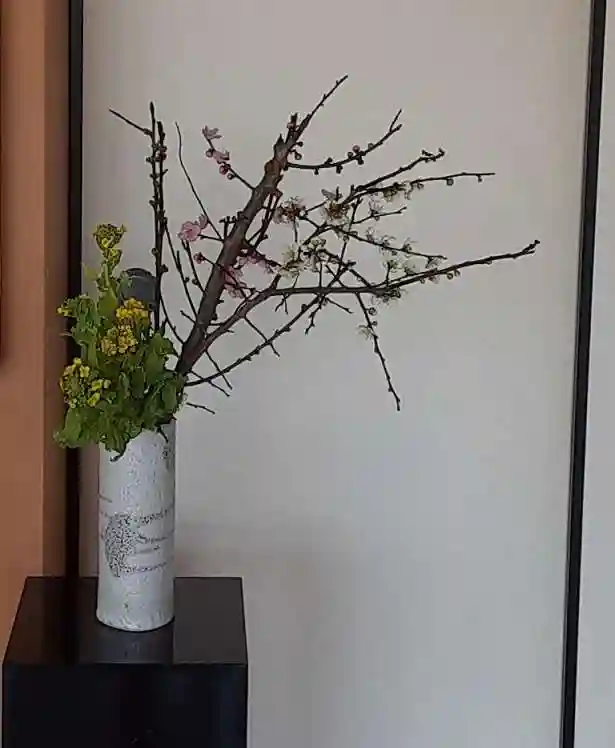 もうすぐ桃の節句ということで、桃を生けました。