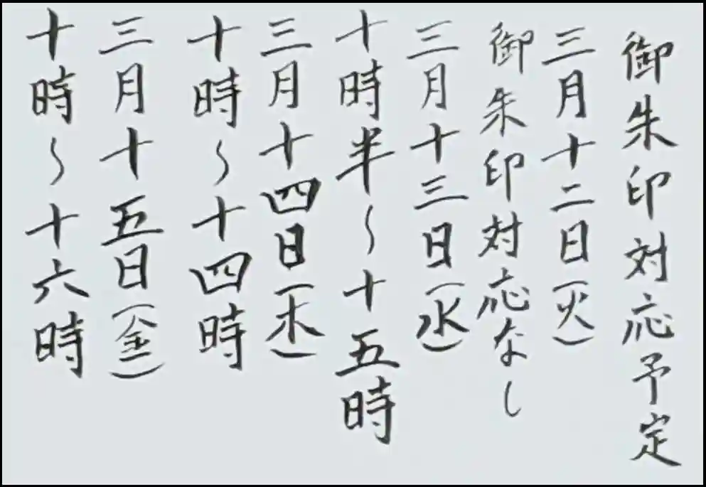 3月12日以降の御朱印対応時間の予定です。