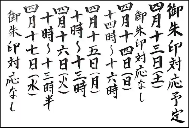 4月13日以降の御朱印対応予定です。