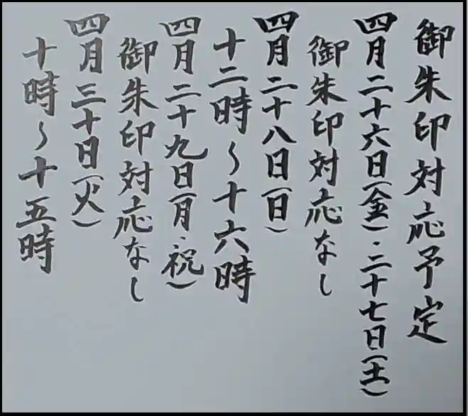4月26日以降の御朱印対応予定です。