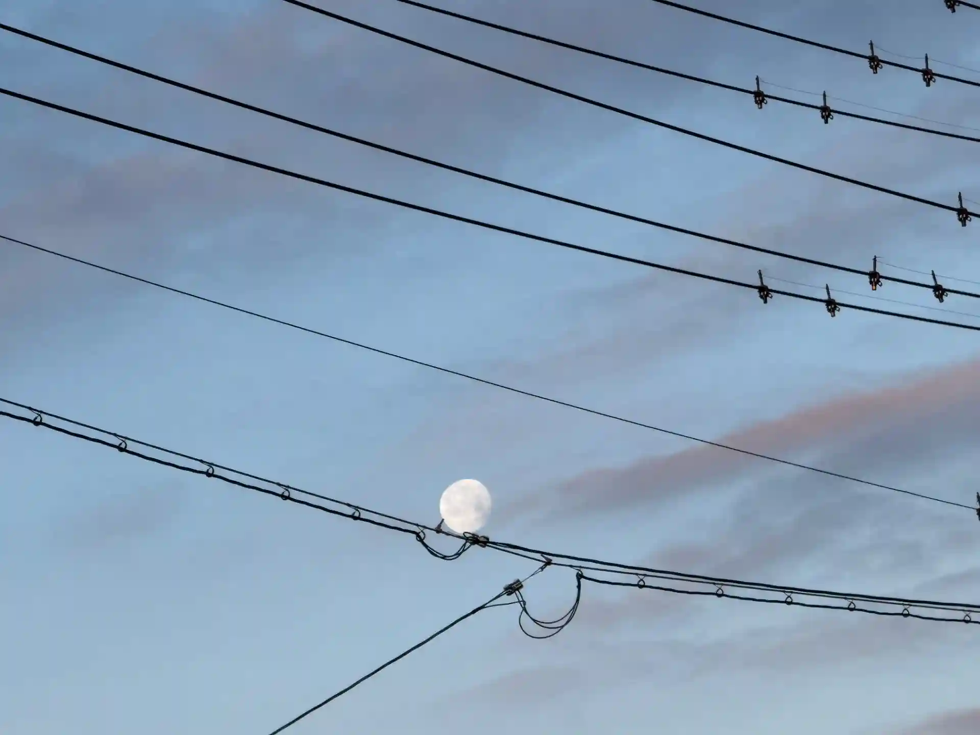 今朝は、まだ丸い月が