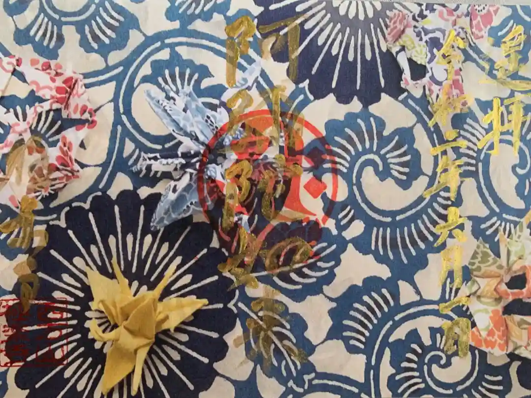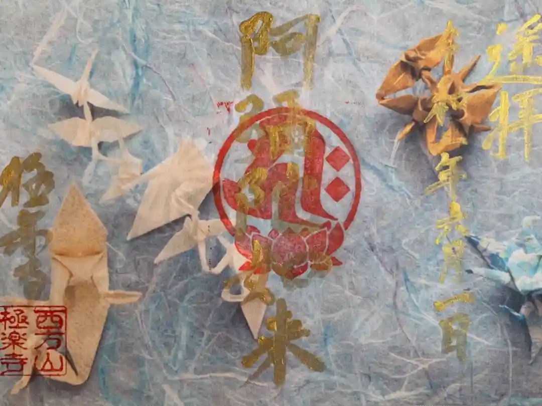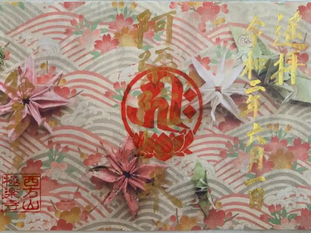 和紙に折り紙を置いたものを撮影し御朱印の台紙としているとのことで、背景が立体的に見えますね😲