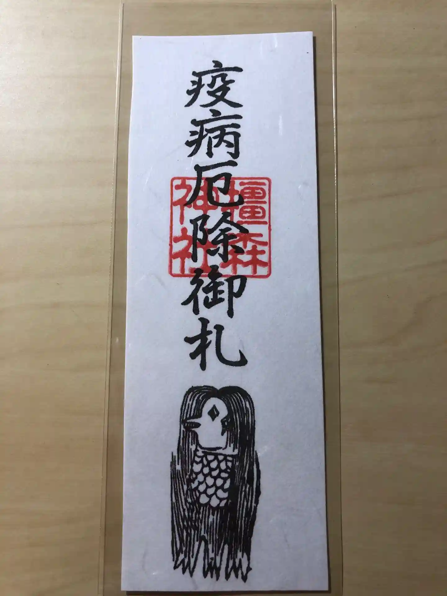 厄除けのアマビエのイラストの入った御札をいただきました。
