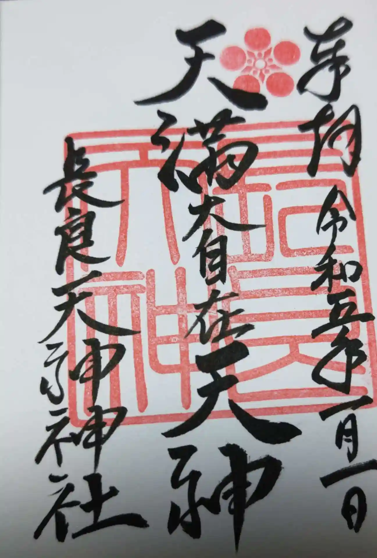 直書きの長良天神神社御朱印(500円)