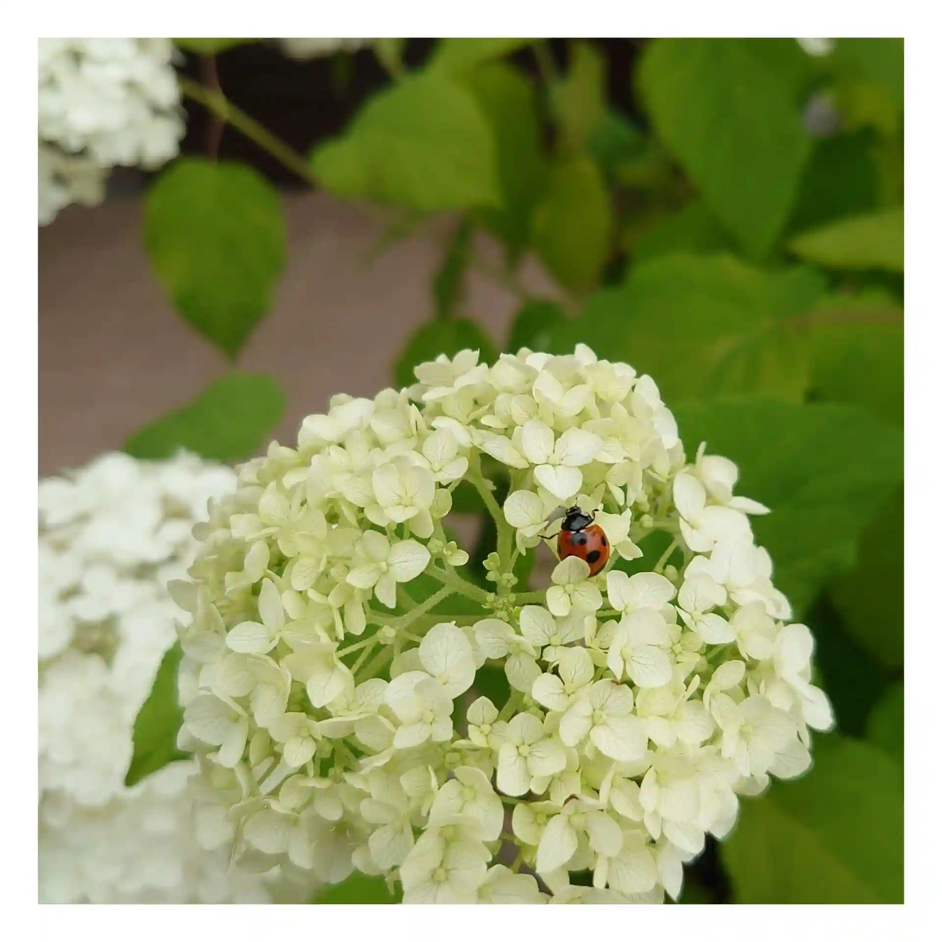 玄関先のアナベルにてんとう虫を見つけました🔍️