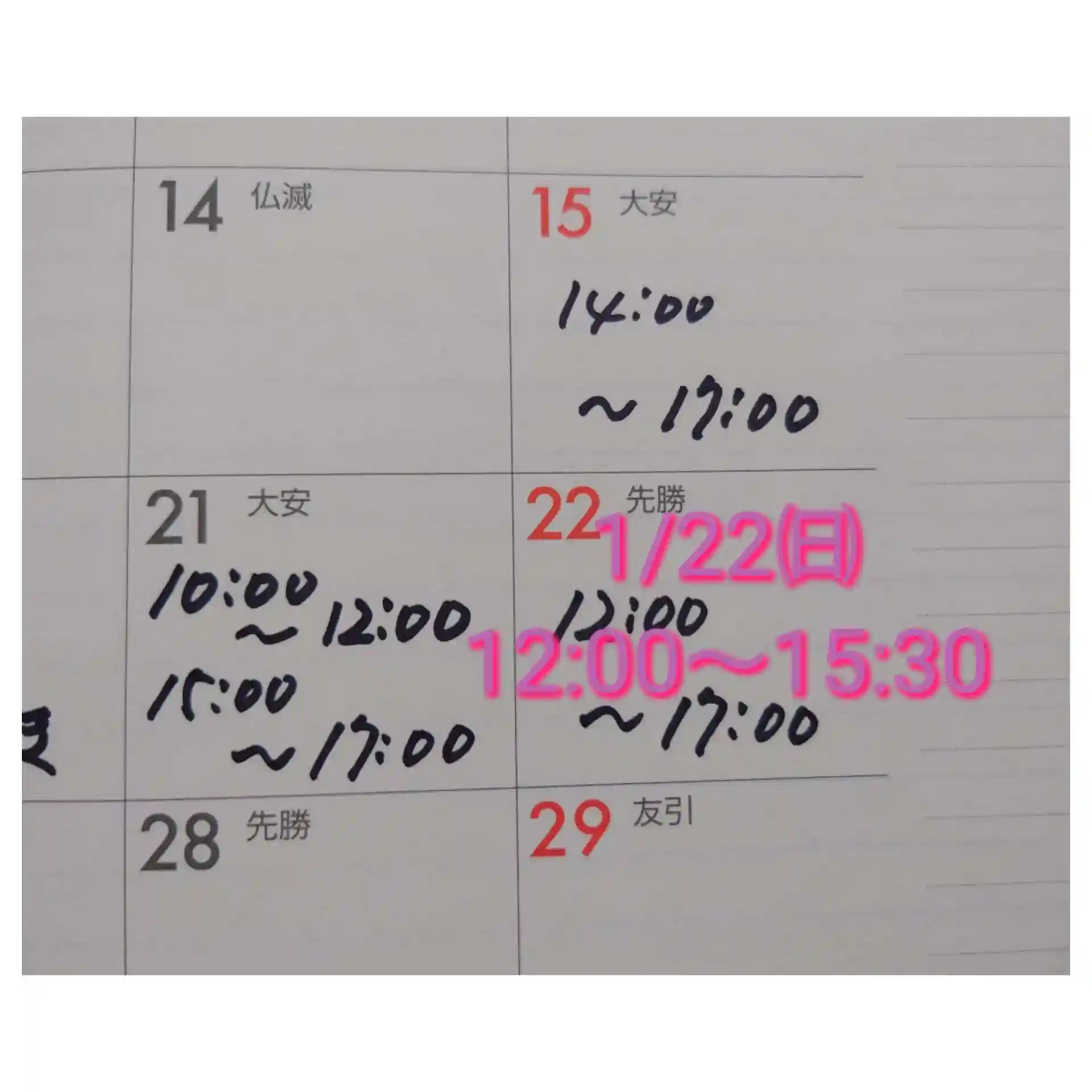 1/22㈰12:00〜17:00(変更前)