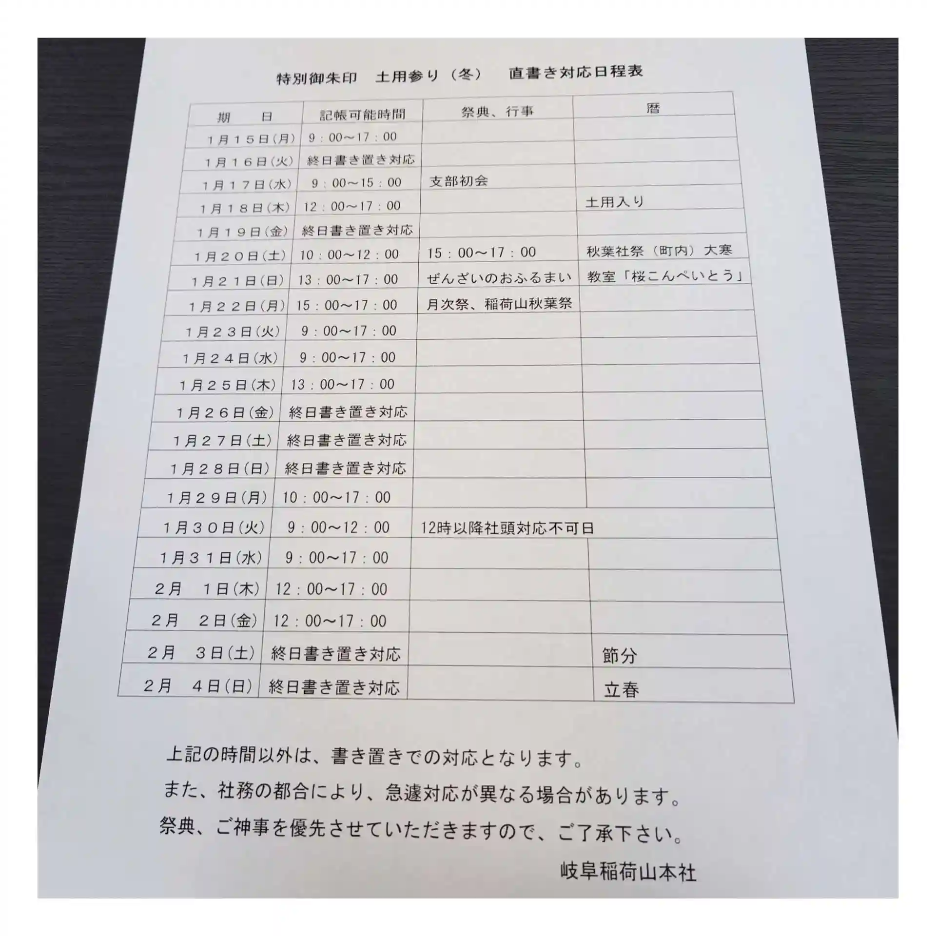 特別御朱印「土用参り(冬)」