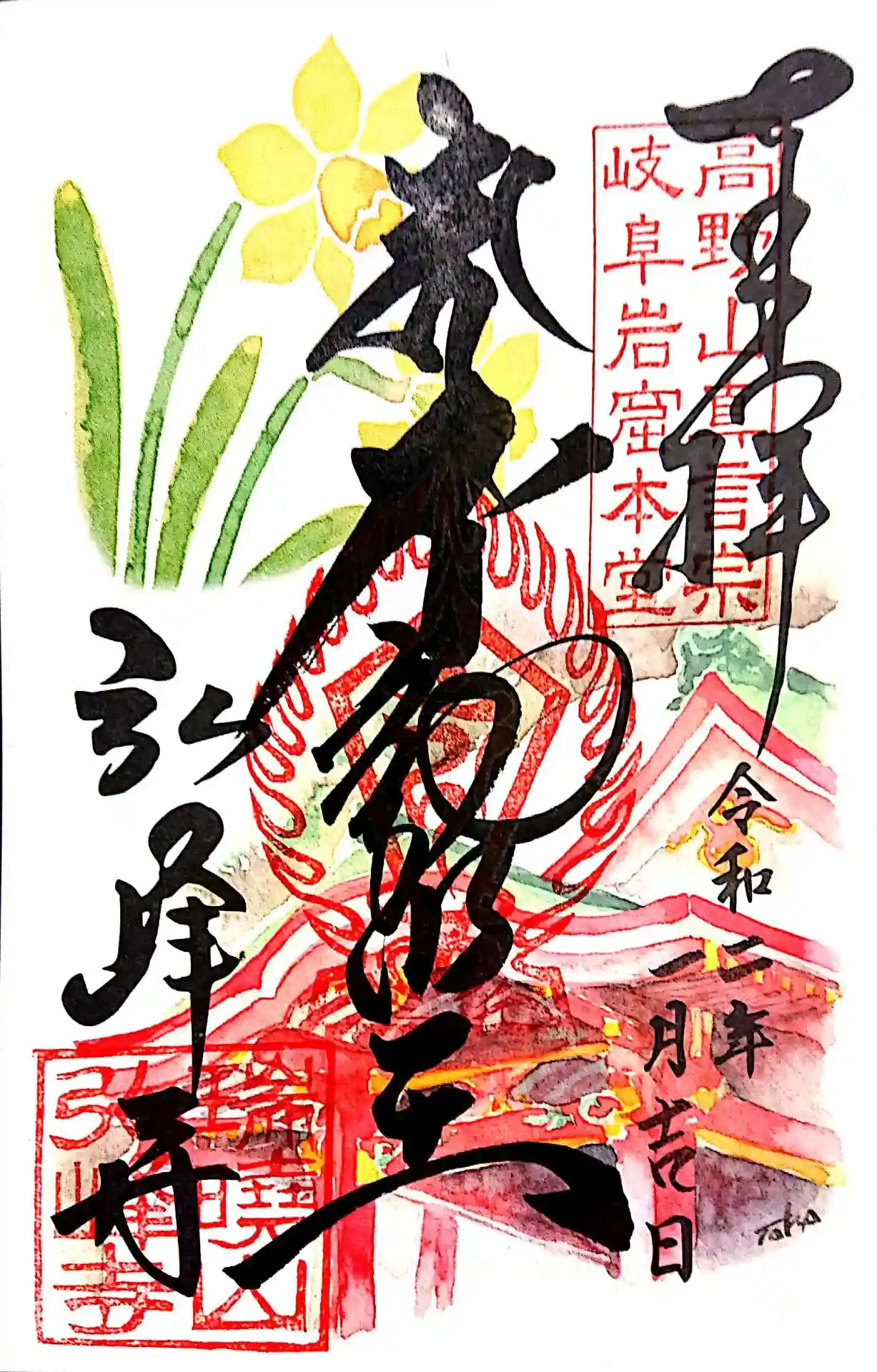 1月の書置き御朱印。水仙が素敵です✨
