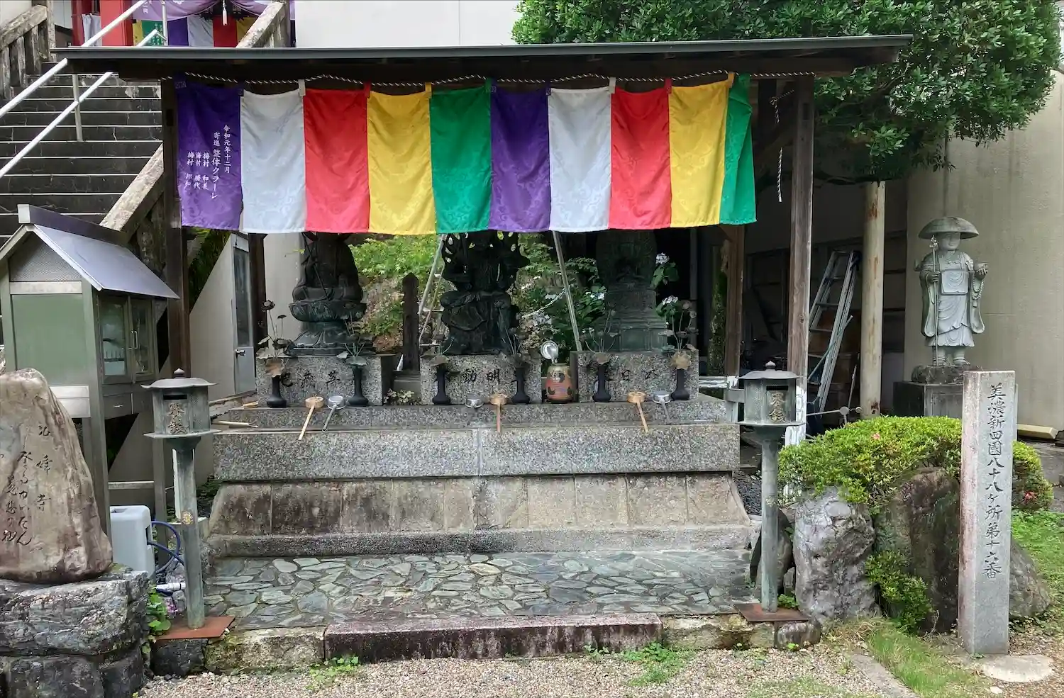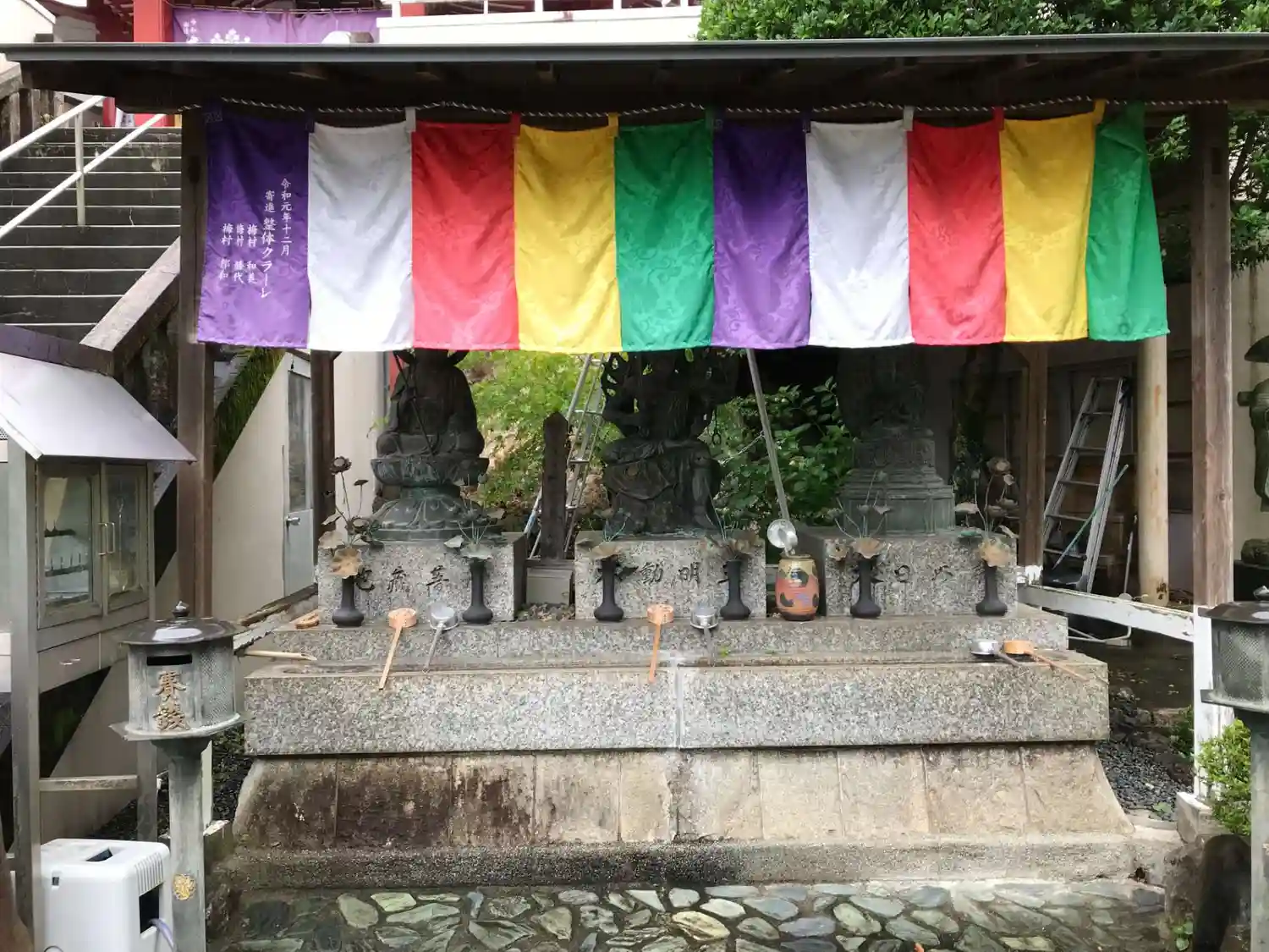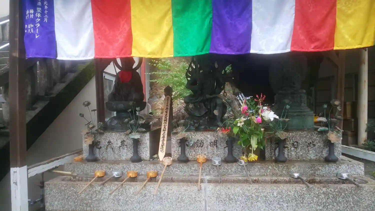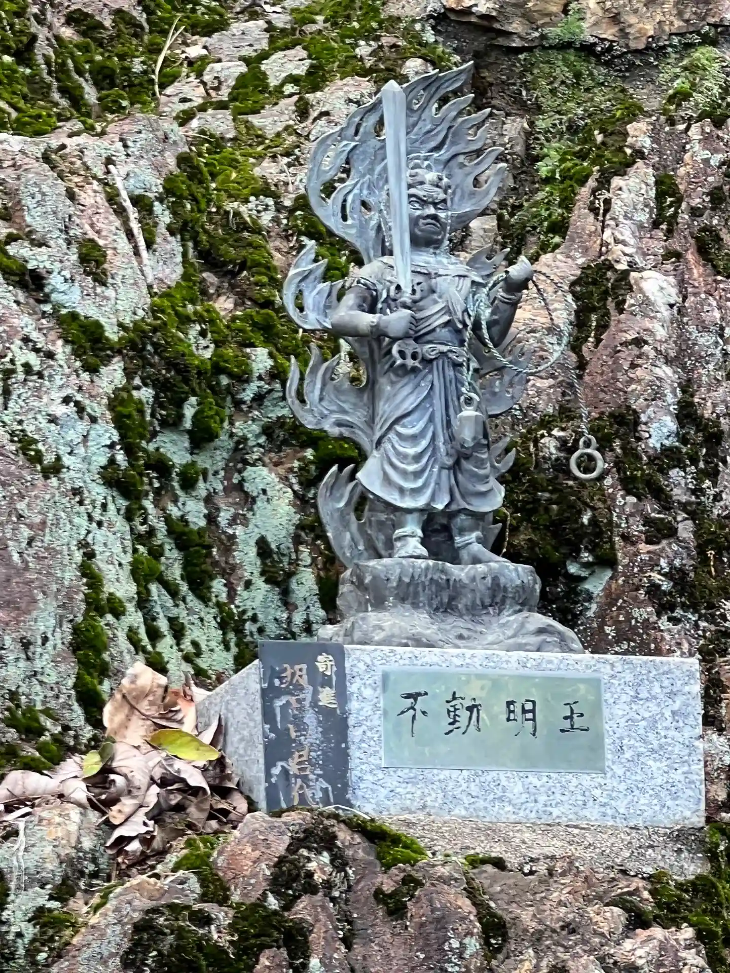 本堂前へ向かう階段の始点に不動明王像などが鎮座しています。
