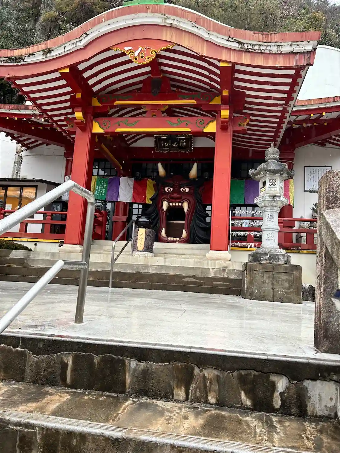 ご本堂入り口の大きな鬼が中々の迫力で迎えてくれます。本堂を出て奥の院への道はギリギリの崖の上!怖か…
