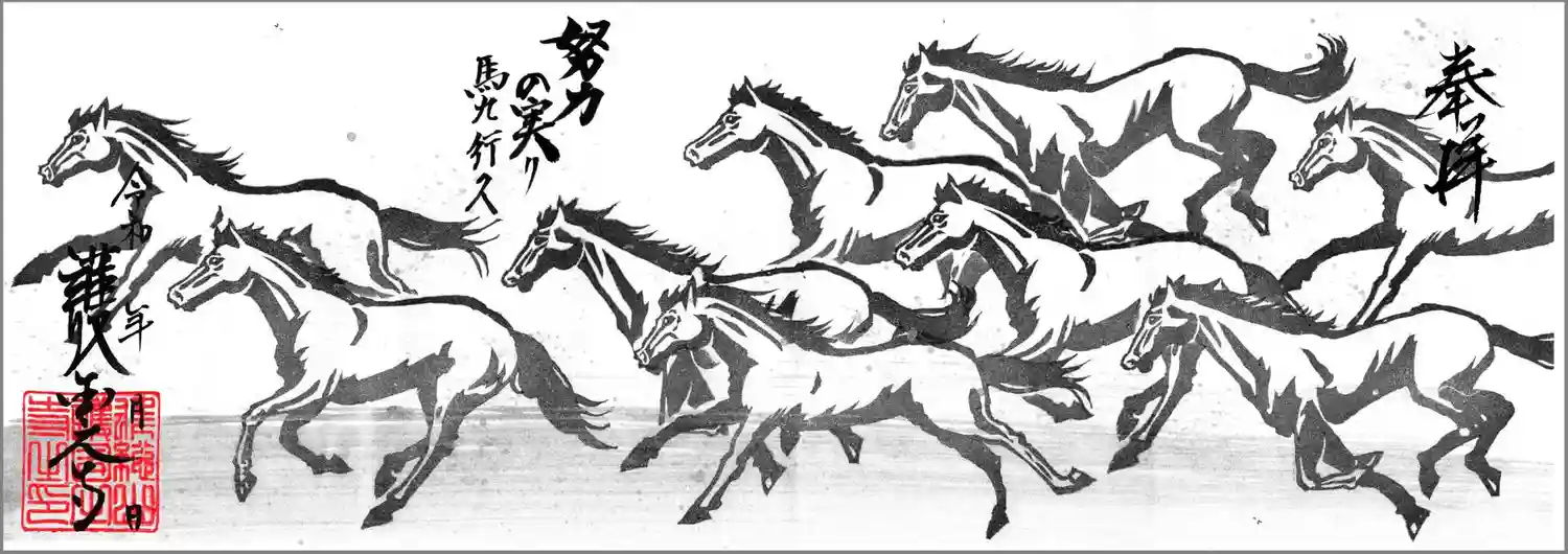 縁起の良い左馬を書いています。