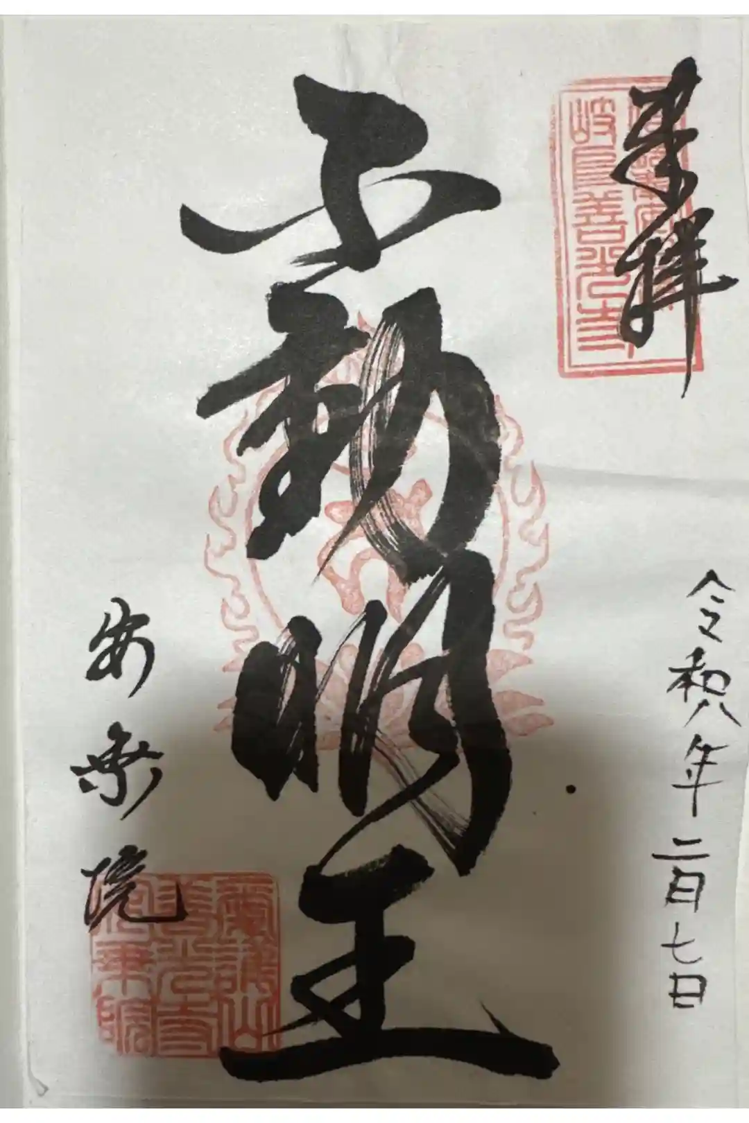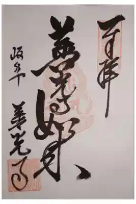 真ん中に善光寺如来と書かれ、梵字の印が押された御朱印です。