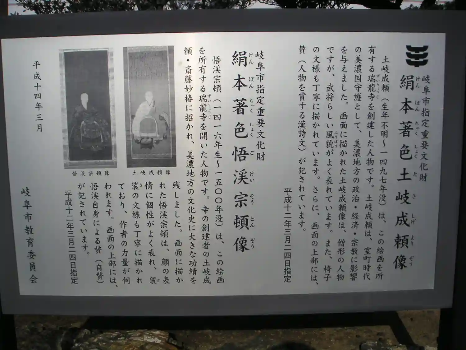 | 開山・開基 | 斉藤利藤(妙椿大居士)・悟渓宗頓 |