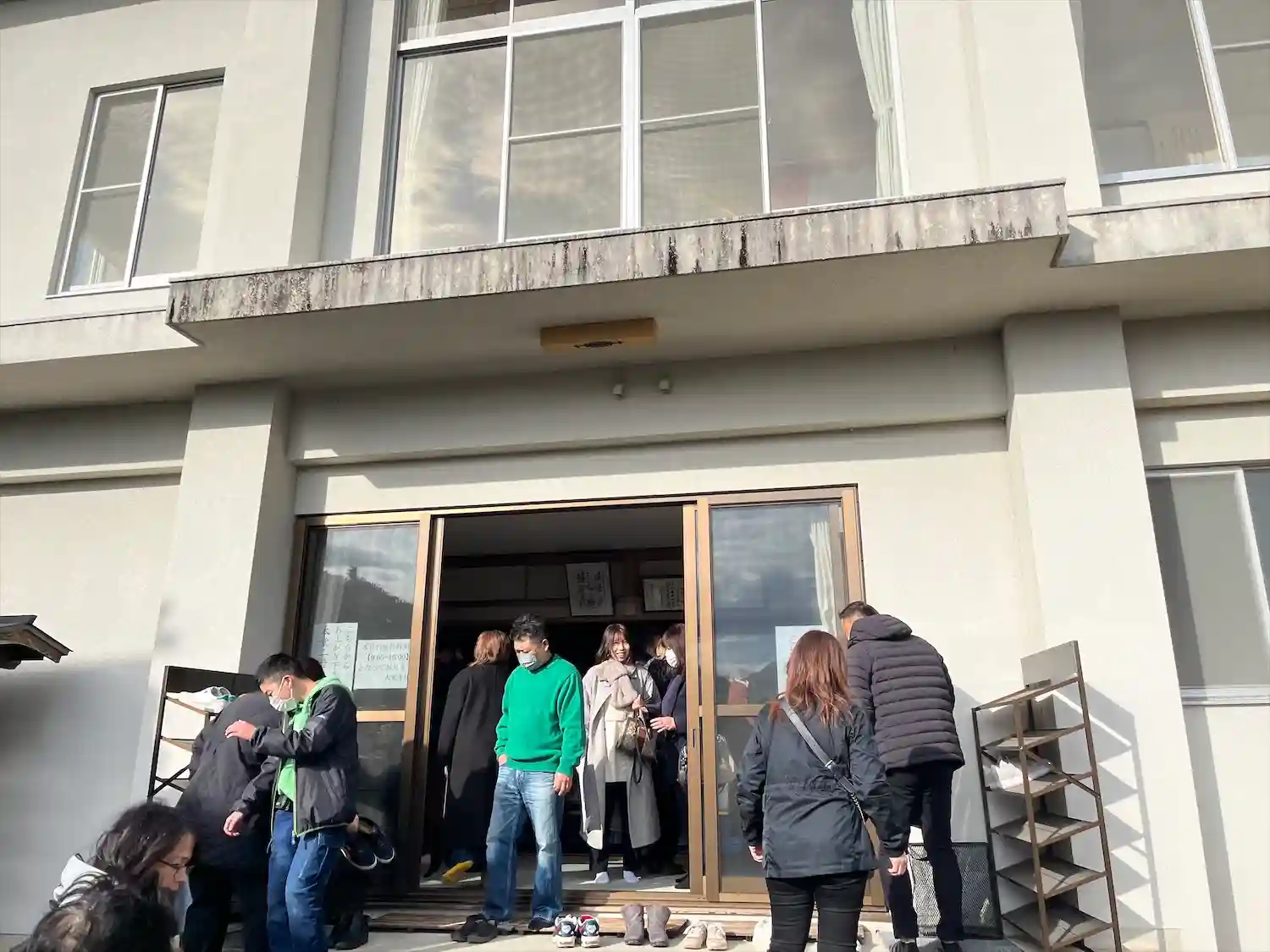 お寺までの道は狭く、また駐車場もパンパンで、斜めになっている…